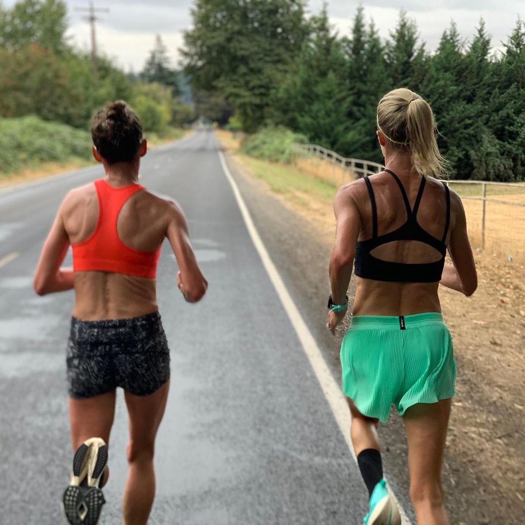 Shalane Flanagan(左)期待能幫助最好的朋友兼《Rise and Run》合著者 Elyse Kopecky(右)完成她的初馬