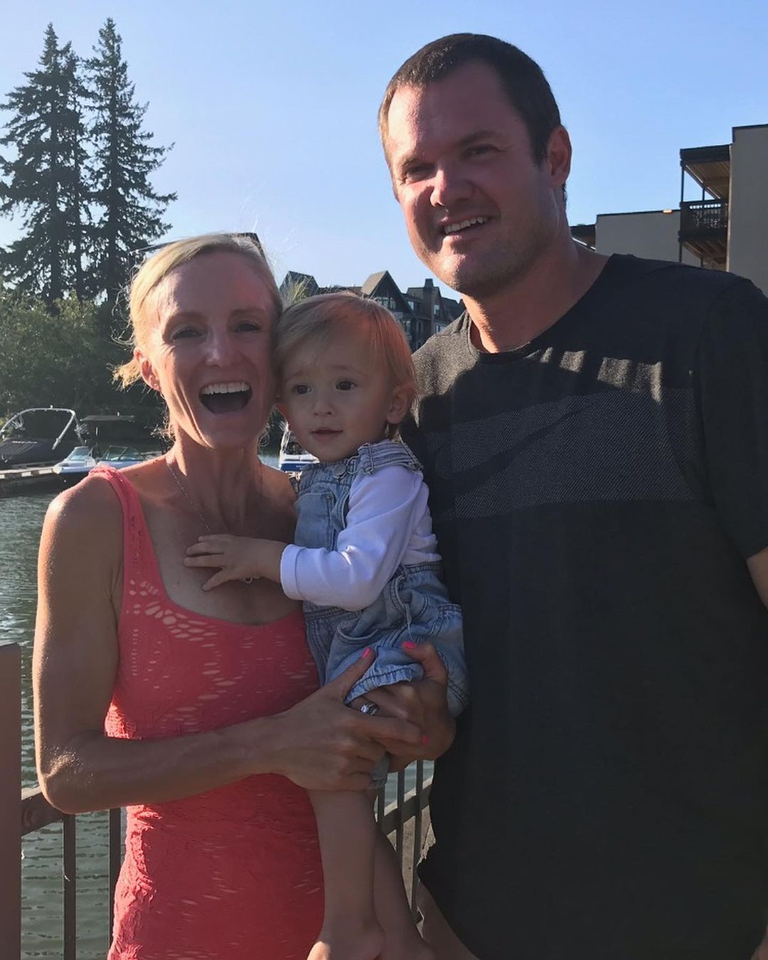 2020年春天,Shalane Flanagan(左)和丈夫 Steven Edwards(右)領養了孩子 Jack Dean Edwards(中),並第一次為人父母