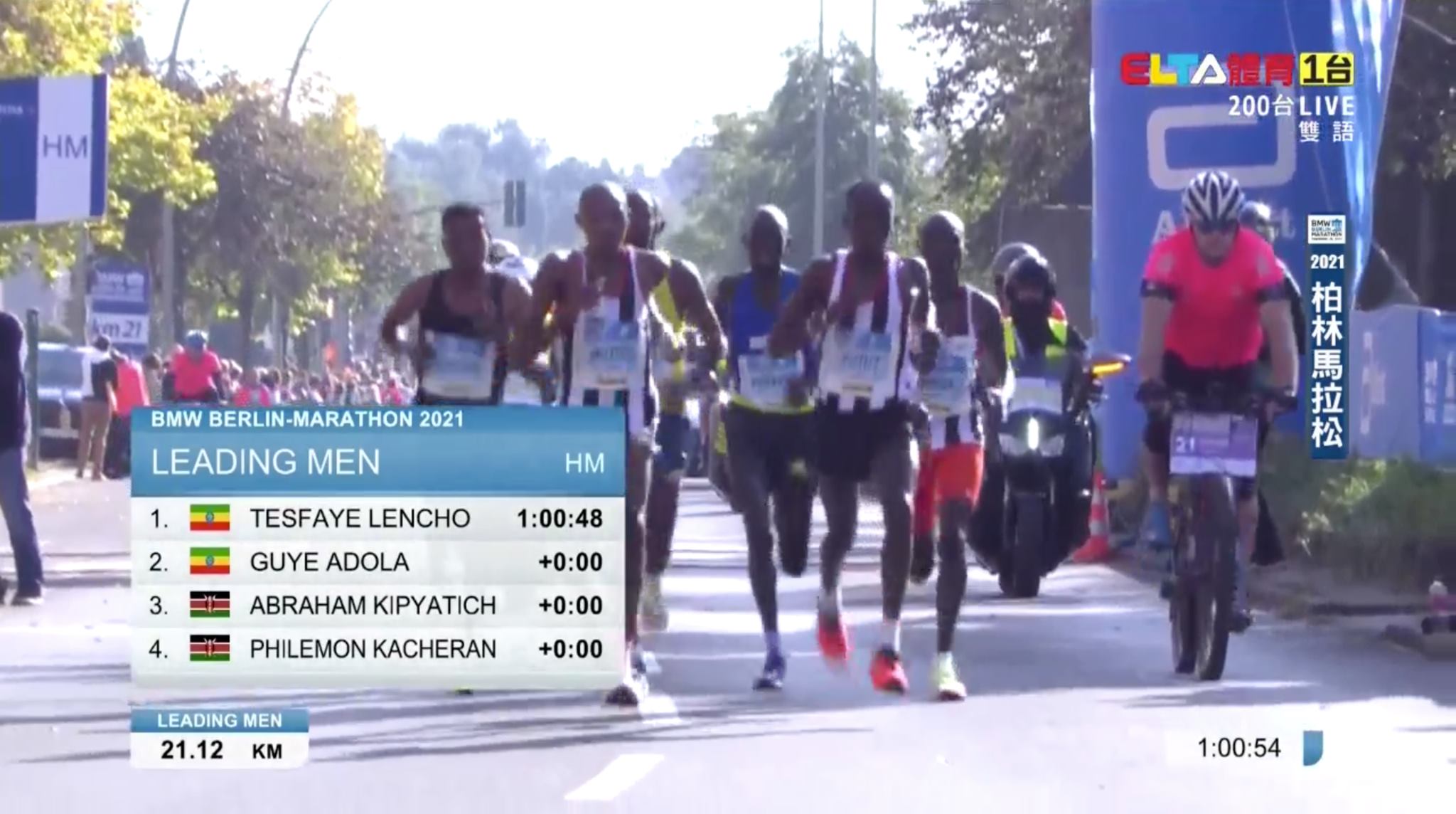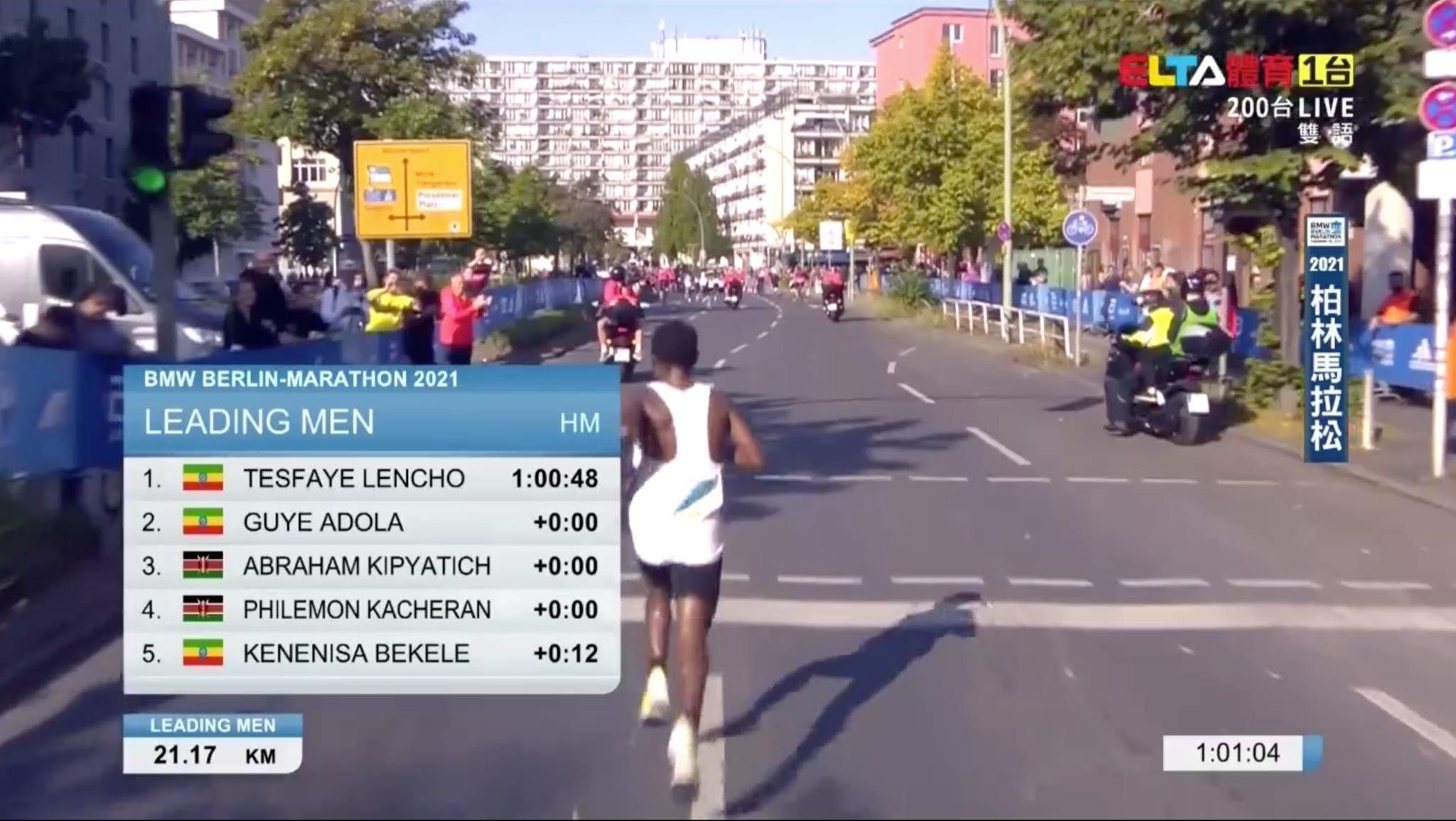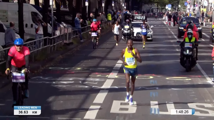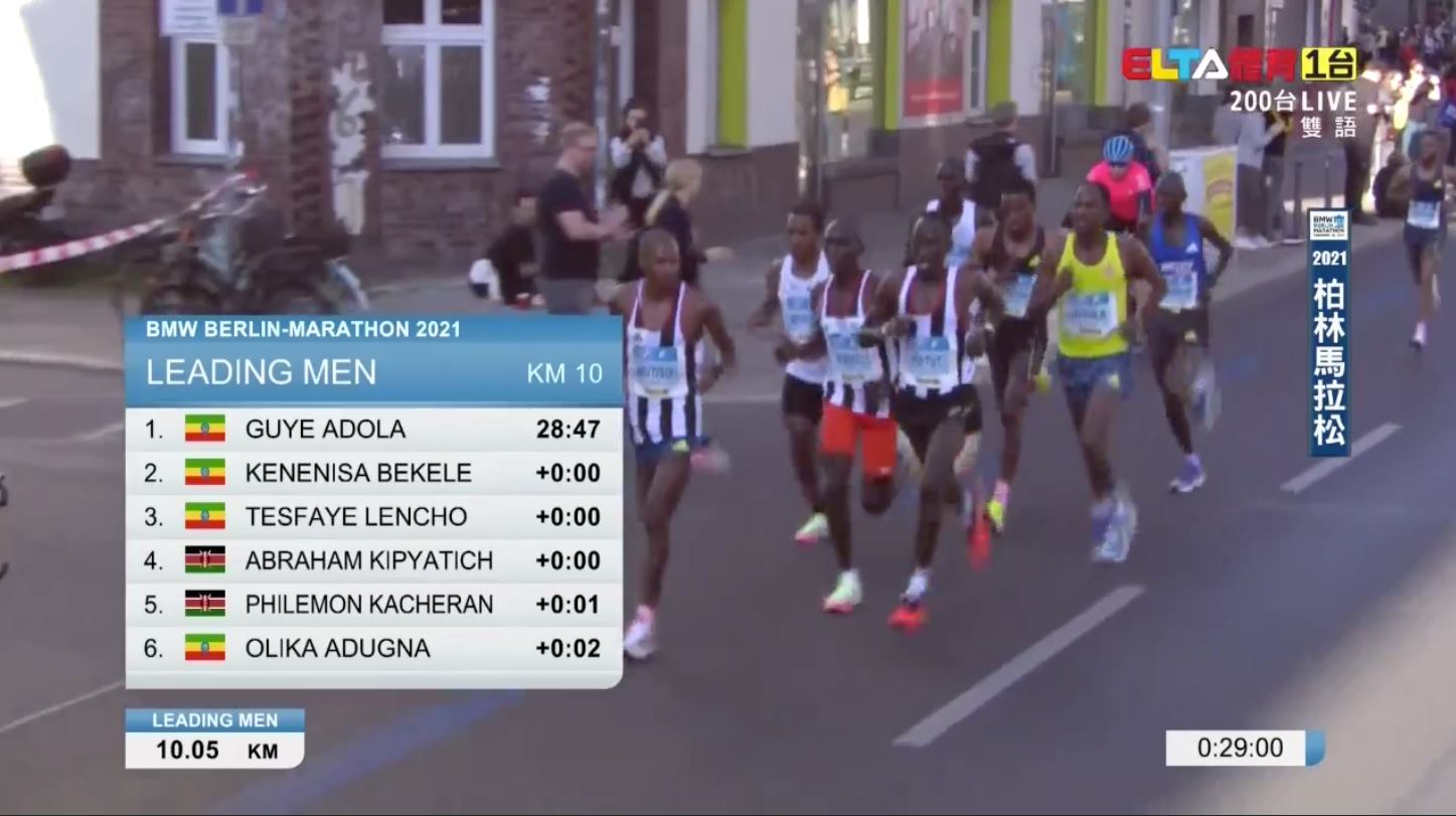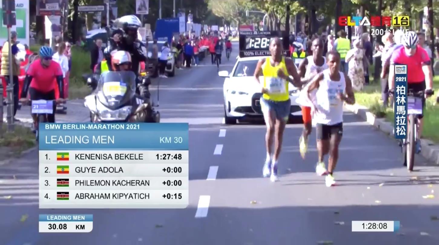 2020 年因為疫情取消的柏林馬拉松,今年順利舉行!賽前呼聲最高的前 5000m、10000m 世界紀錄保持者、馬拉松歷代二位的 Kenenisa Bekele 和團隊以衝擊世界紀錄而來,比賽前半在配速員給力的帶領下,以 1:00:30 通過前半程,比世界紀錄快約 20 秒。