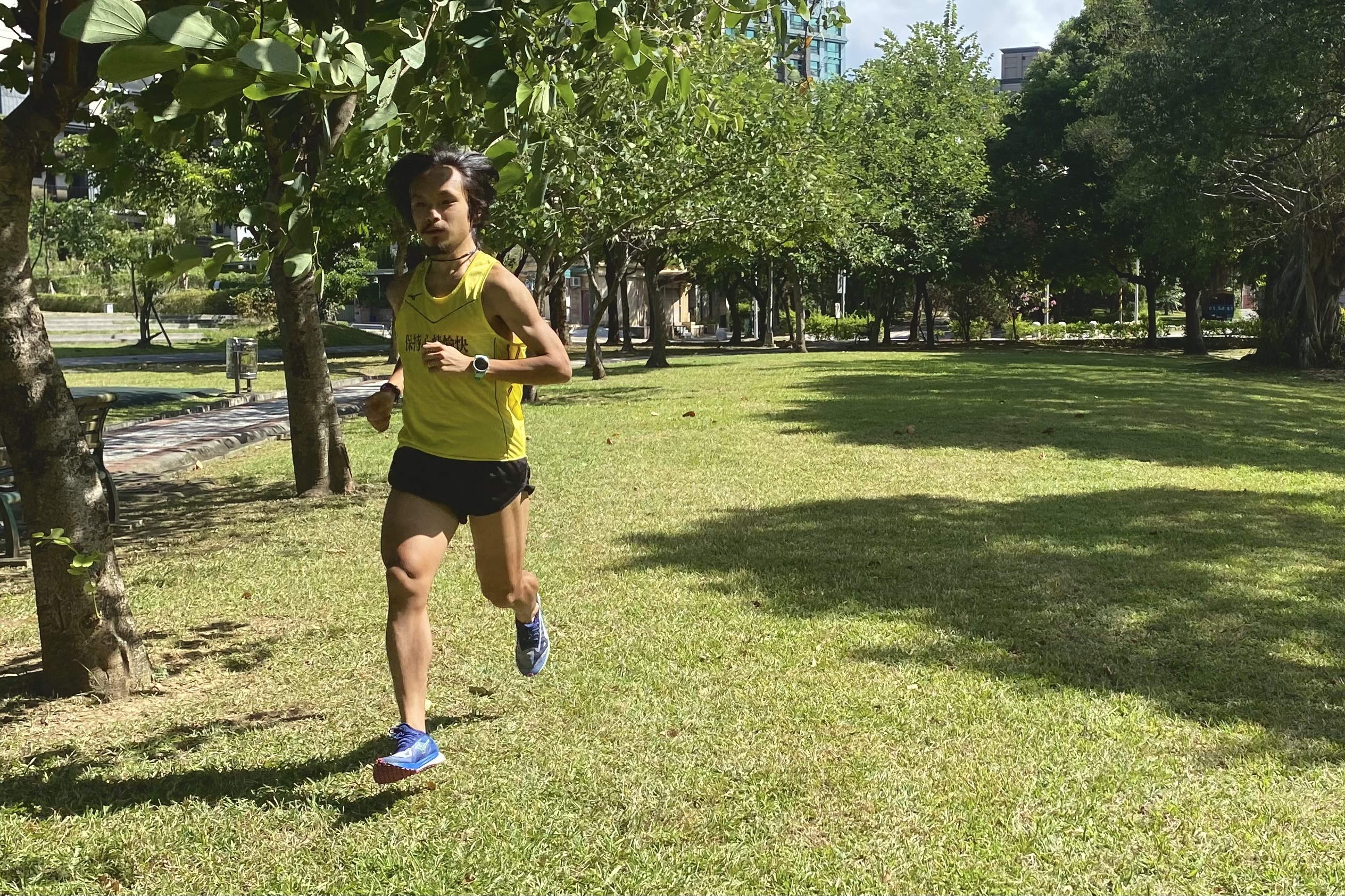 再來是在陽交大、清大的丘陵地形校園輕鬆跑一小時,以非慢跑的方式上坡稍微出力、順跑下坡,WAVE DUEL NEO 2 上坡除了不錯的抓地力有助推蹬,在下坡也發揮比其他同級薄底鞋更優異的緩衝和力量過渡,不過因為大底全都是顆粒,加上個人腳刀跑法容易摩擦,下坡大概超過五分鐘、速度快於 4:00/k 時就有灼熱感。