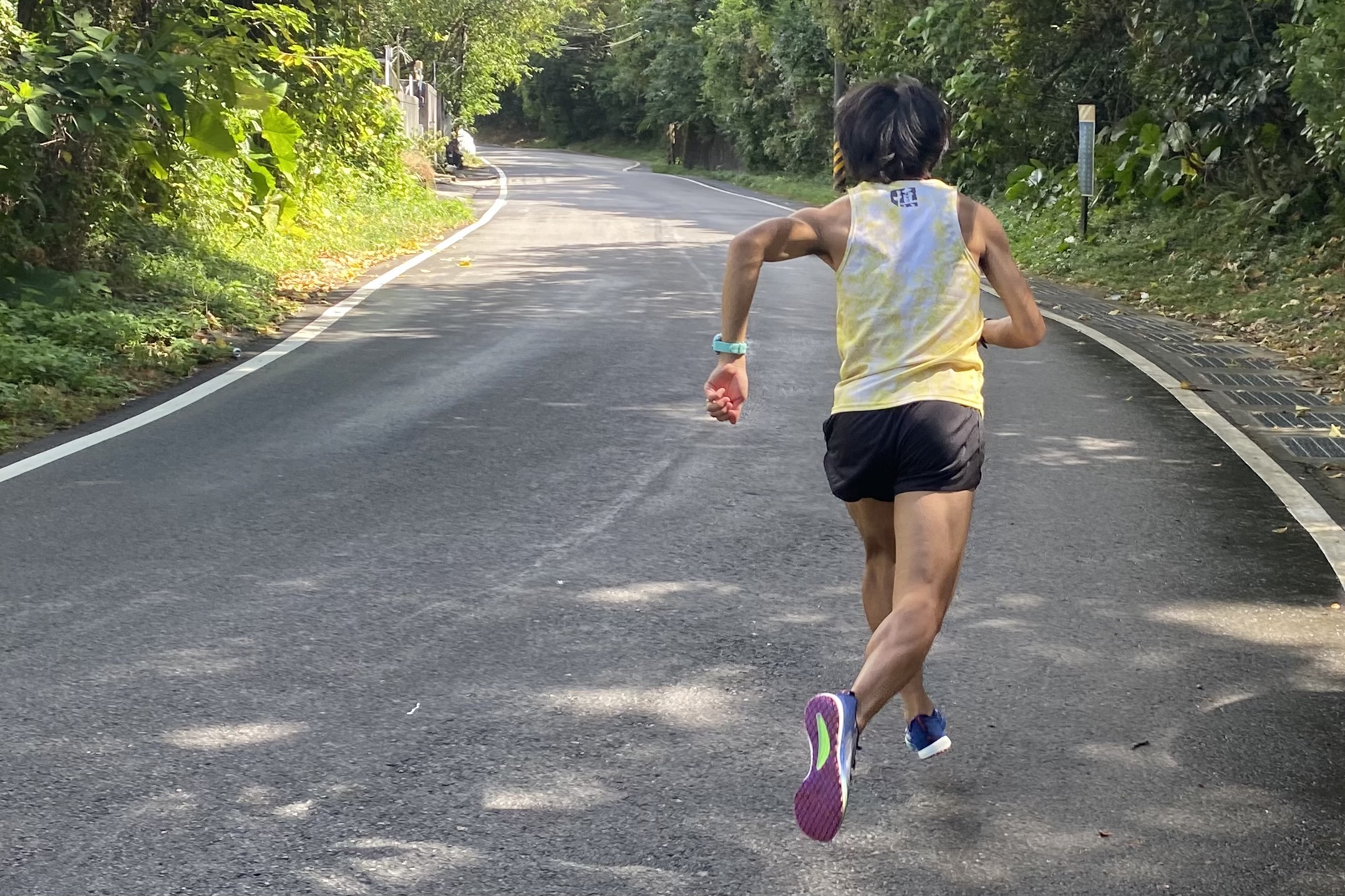 為了加強各肌群的和爆發力,在一條 300m、6% 坡反覆跑十趟,每趟大致上是一開始發力衝刺、中間穩定跑姿、最後發力加大肢體活動範圍,WAVE DUEL NEO 2 的 G3 大底在著地推蹬時發揮強大的抓地效果,輕盈的重量在回拉時沒有造成髖部、腿後肌負擔,在敏捷度上很給力!最後一趟加速追平兩年前的路段最佳!
