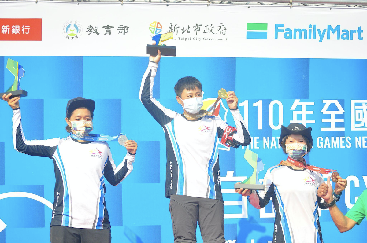 蔡季伶(左)、周佩霓(中)、楊若芸(右)女子組下坡賽頒獎。攝影 /蔡郁玟