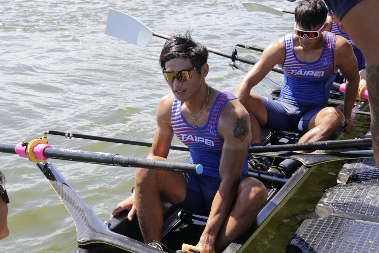 蔡瀚陞坦言挑戰連霸壓力大,同時希望樹立目標讓年輕選手挑戰。攝影/徐郁惇 談起這(7)日的八人單槳有舵手式預賽,兩人則認為,由於臺北市近幾屆皆以「老二」坐收,這次希望能在他們帶領下提升士氣一舉奪金。此外兩人也提到,從雙人雙槳調整為八人單槳,除了船隻大小差異外,速度及默契更是需要時間適應的,轉換船隻調整更是花了不少功夫。