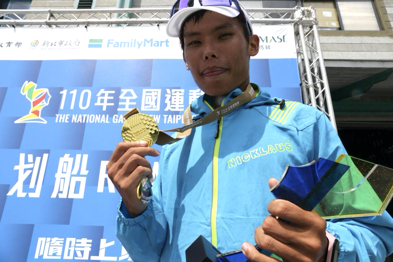 臺南余政賢以 7 分 59 秒 59 摘金,中斷「明輝障礙」。攝影/徐郁惇