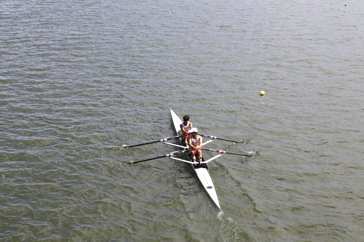 雙人雙槳林哲緯(後)、余政賢(前)奪得銅牌,成績 7 分 3 秒。攝影/徐郁惇