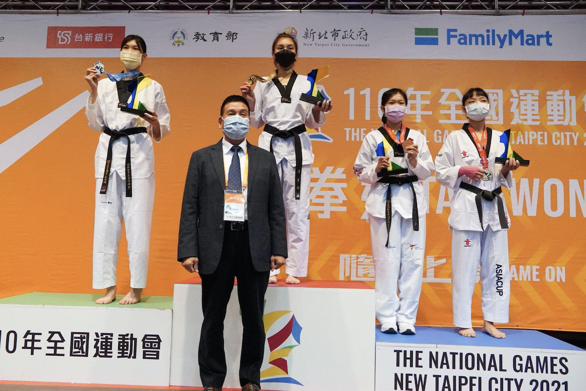 另外,臺南市徐晧祐今年升上 63 公斤級,原本有機會挑戰跨量級金牌,卻因 10 支警吿犯滿,金牌拱手讓給了苗栗縣劉宗霖;而備受矚目的東奧國手羅嘉翎(新北市),以 4:0 擊敗南投縣張芮恩,收下個人在全運會的第一金;參加男子 68 公斤級的桃園市邱義睿,第一次參加全運會,就以 20:6 踢落高雄市蔡旻諺,奪下金牌。