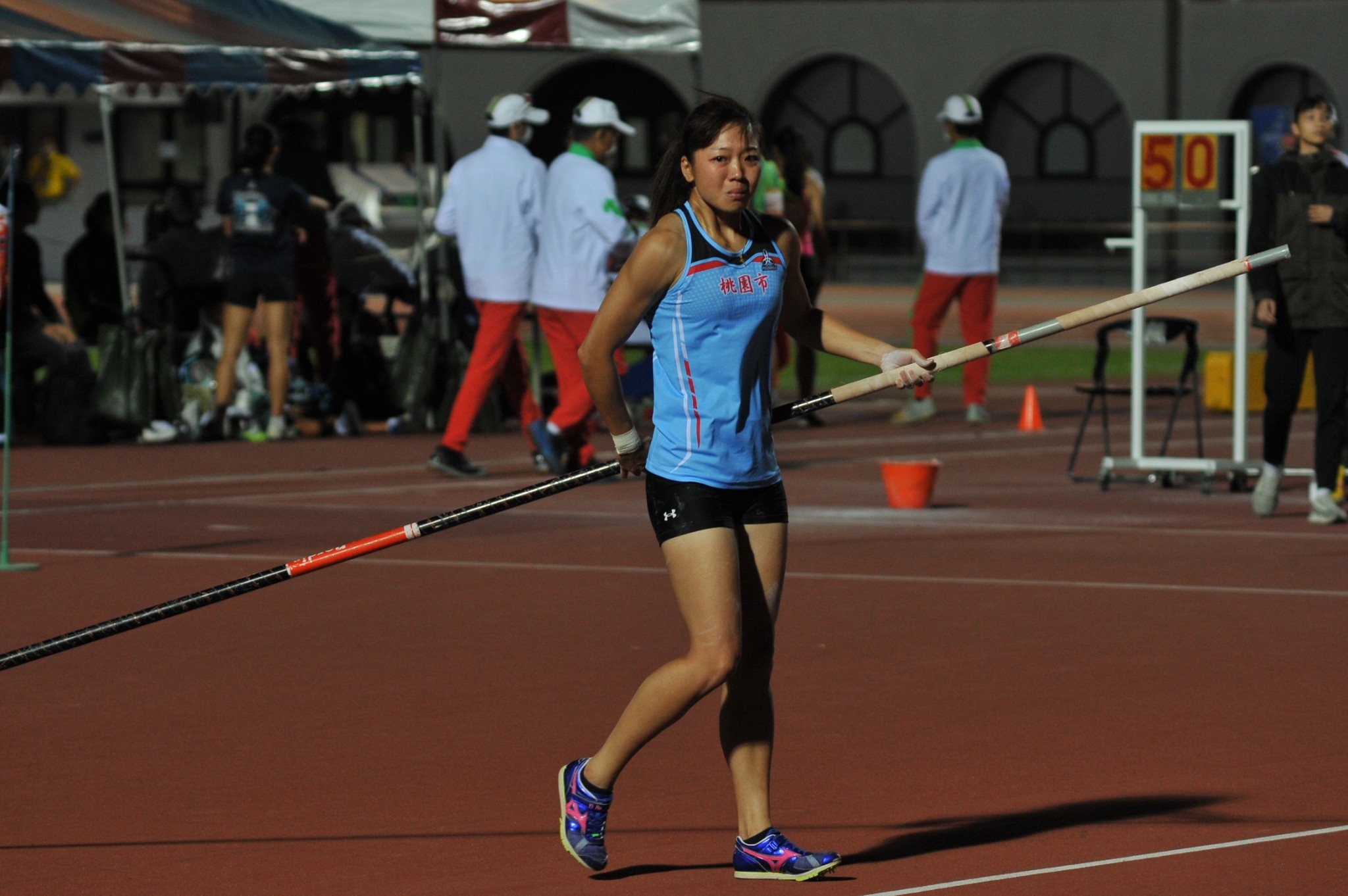 圖/110 全國運動會桃園市撐竿跳女將沈怡如,今以 3 公尺 90 橫掃全場,雖然嘗試挑戰亞運標準 4 公尺 10 未果,但仍順利奪金。