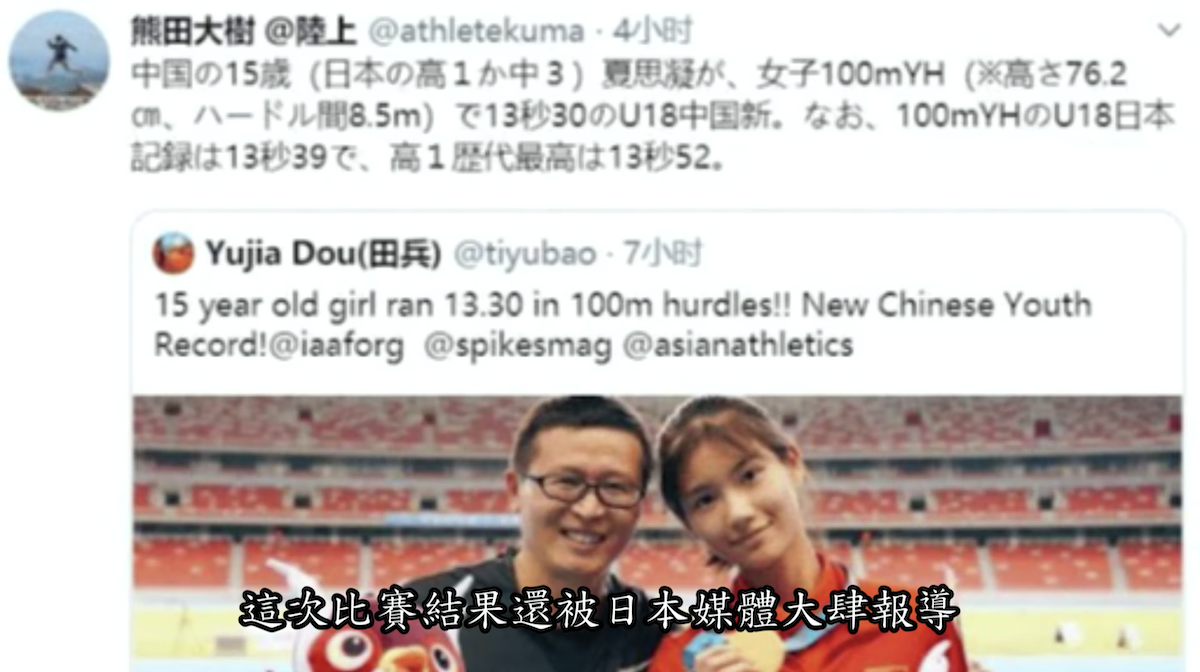 夏思凝在全國青年運動會比賽結果還被日本媒體大肆報導