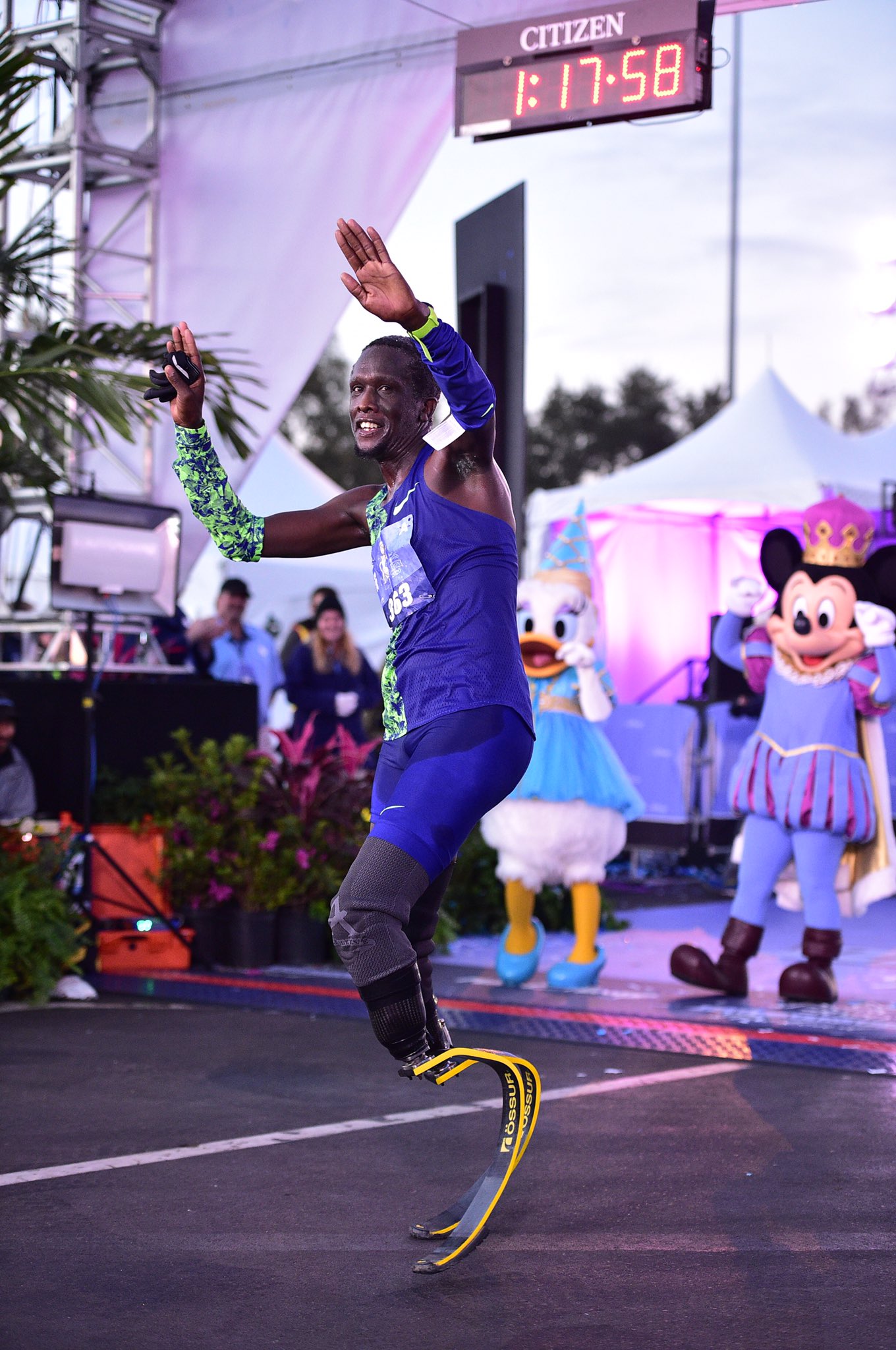 Marko Cheseto 在 2012 年他開始用義肢跑步,找回人生的目標。圖為他參加 2020 年迪斯尼公主半程馬拉松賽