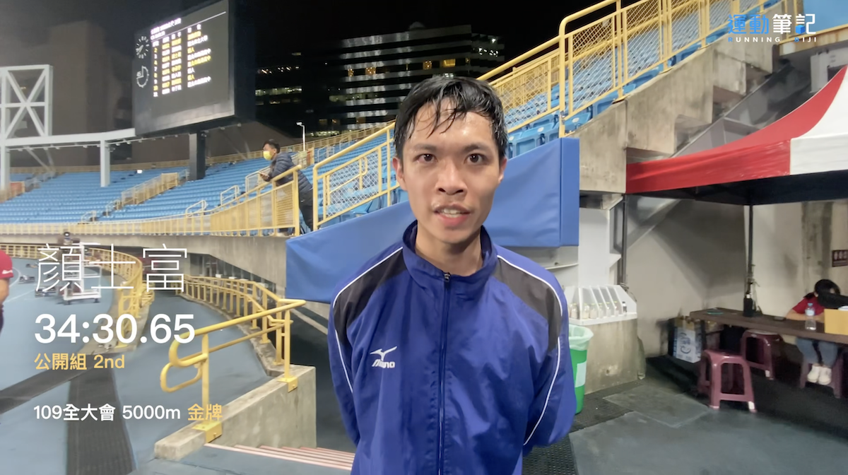 而這次拿到第二的 顏士富 其實是畢業於警察大學,他的個人最佳是 109 警大校運會的 33:45,那一場前五千 16:40、後五千 17:05;同一年更拿下全大運(全國大專校院運動會)乙組五千金牌!