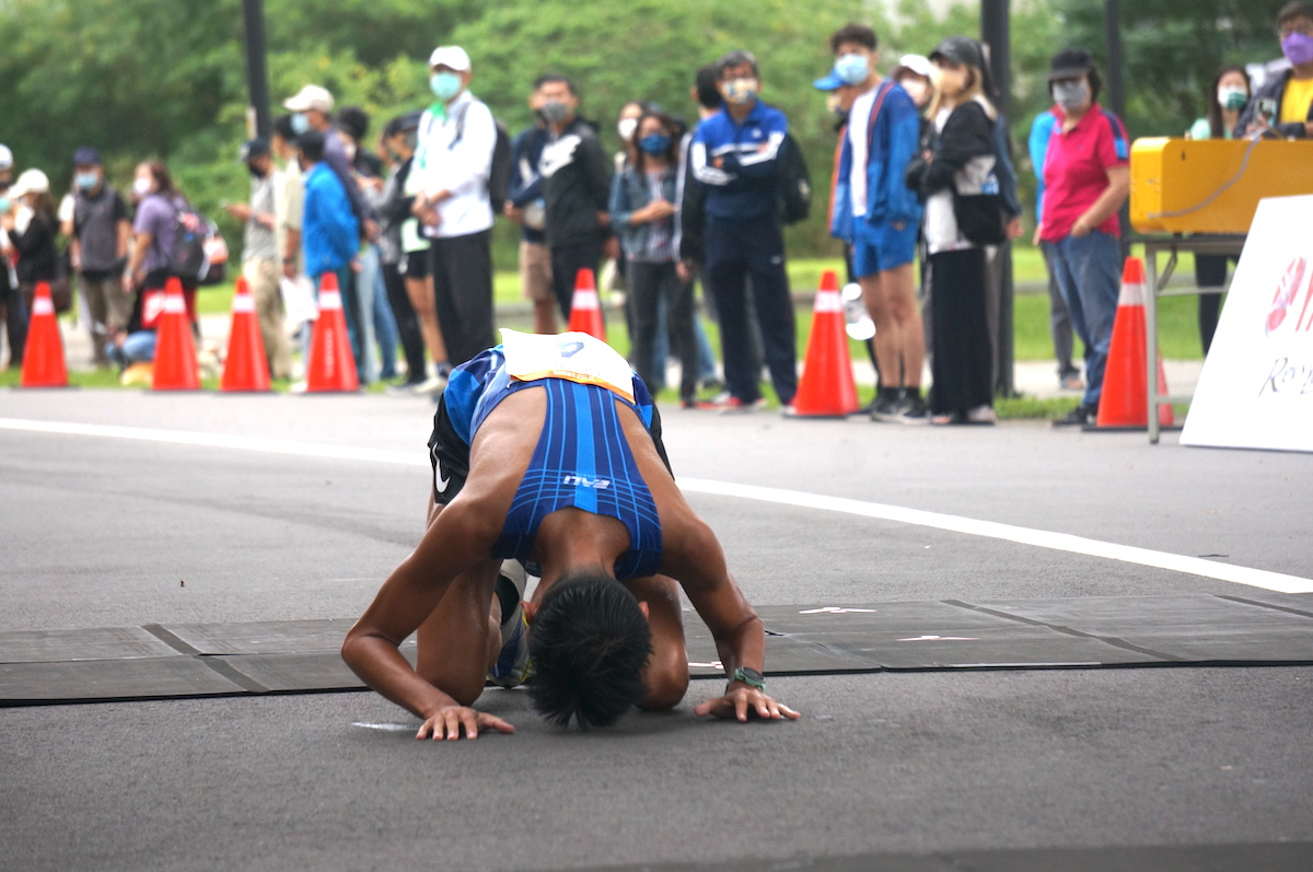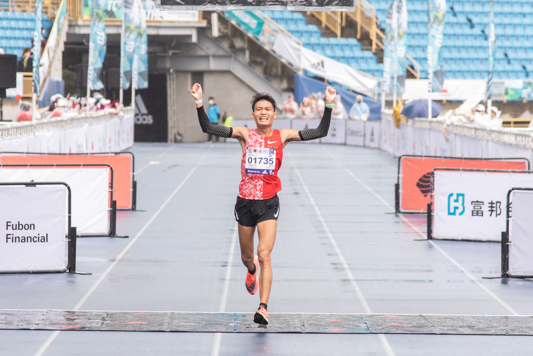蔡政軒在去年 2020 台北馬拉松以 2 小時 30 分 07 秒通過終點線,奪下國內男子第三名