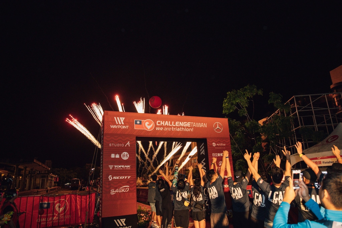 CT 賽事結束後施放煙火,工作人員們在終點線旁一起慶祝。圖/莫克文化