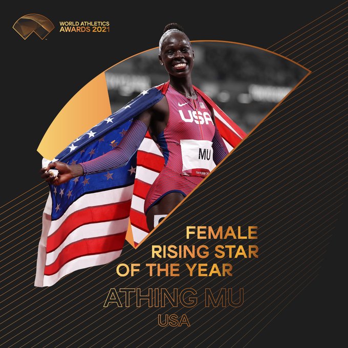 其他獎項像是新星獎,頒發給了年僅 19 歲的美國田徑新星 Athing Mu ,她在今年的東京奧運上 800m 及 4 x 400m 接力雙項金牌,不僅如此,她同樣在奧運結束後的 Prefontaine 經典賽中飆出 1 分 55 秒04 的成績,打破 NR、地區 20 歲以下紀錄、國家 20 歲以下紀錄。