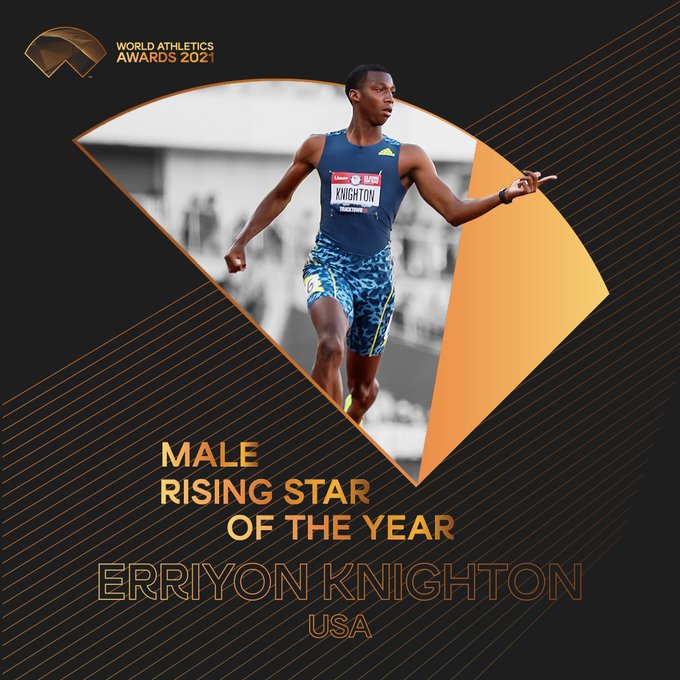新星獎的另一位得主則是 Erriyon Knighton ,說起這位新興新秀在 16 歲參加美國少年奧林匹克運動會時就展現了絕佳的短跑天賦,在 100m 、200m 中分別跑出 10 秒29 及 20 秒33 的驚人成績,被眾人看好能夠打破 Usain Bolt 的 U18 紀錄,就在今年 6 月份,Knighton 不負眾望在比賽中飆出 20 秒11 成功打破 U18 世界紀錄!
