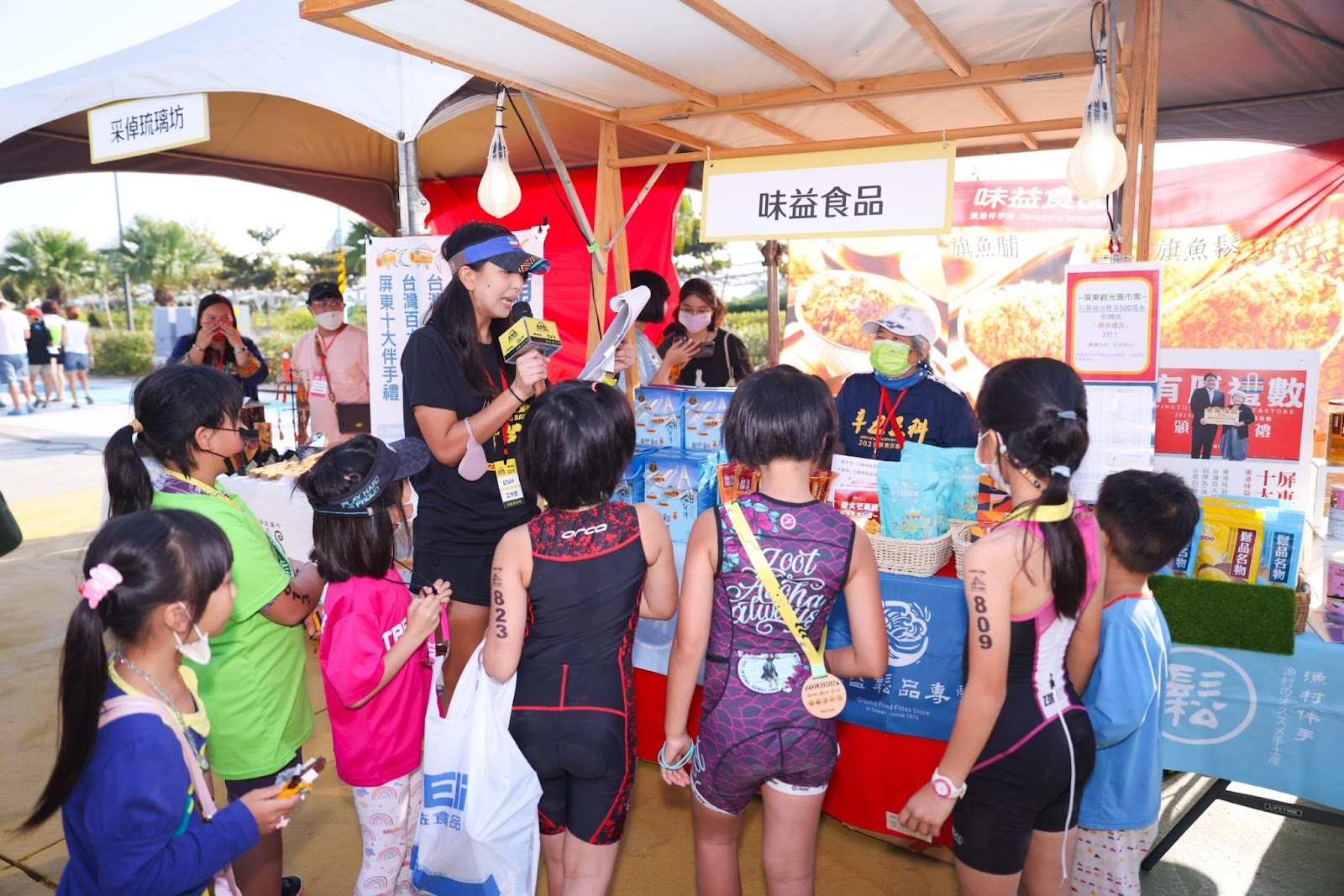 這次也加入了在國外行之有年的「賽事直播」、媲美鐵人世錦賽等級的「Coffee Boat(咖啡船)」體驗,不但提高活動趣味性,更增添許多話題性。除此之外,主辦單位也和「屏東觀光圈」合作,活動現場設置「屏東觀光圈市集」,除了提供當地觀光訊息,現場結合在地商家由單車網紅小D做美食舞台活動導覽,現場還提供摸彩活動,最大獎是「台灣好行小琉球二日自由行」,讓來參加的朋友不但好吃、好玩,還能滿載而歸。小鐵人活動後特別結合在地業者安排「魚線椅DIY」體驗,使用廢棄魚線及木頭角料,由老船長親自解說及指導,讓家長帶著小鐵人親手一線一線編織而成,在比完賽後享受更在地的文化體驗。