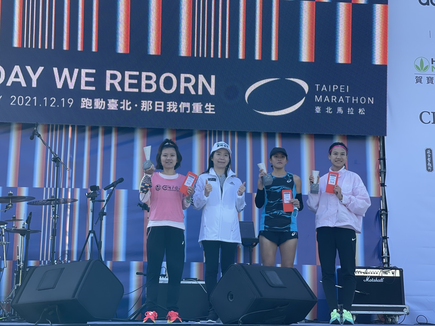 2021臺北馬 半程馬拉松女子組前三名頒獎。 / 攝:章魚燒