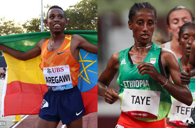 目前全世界 5 公里跑最快的男、女成績,分別為 Berihu Aregawi(左)的 12 分 49 秒與 Ejgayehu Taye(右)的 14 分 19 秒!