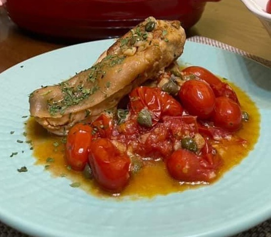 義式酸豆番茄燉雞胸肉是陳淑娟最愛的料理之一(照片:陳淑娟提供)