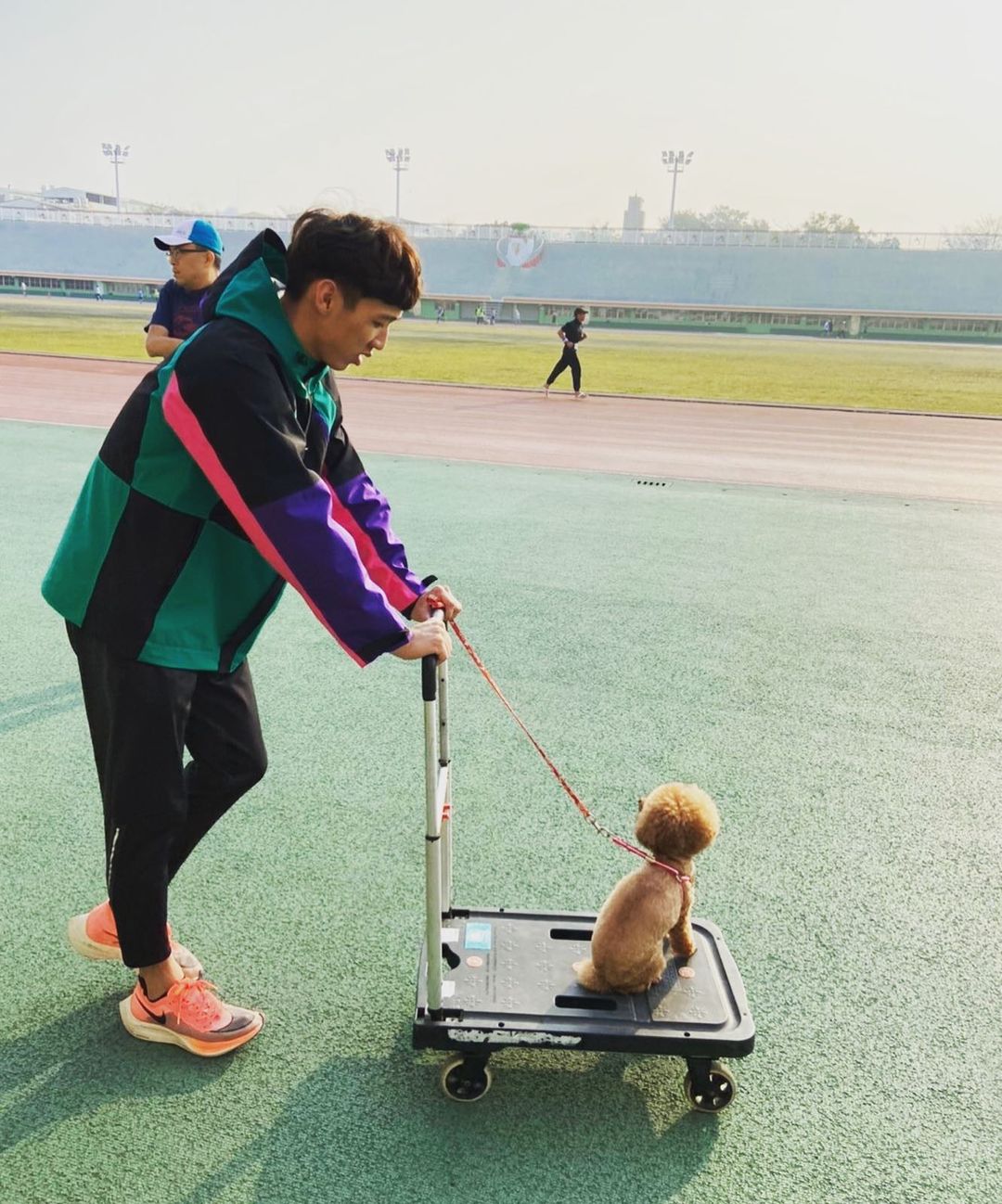 提到秋杰,那就不能忘了他的愛寵“歐姆”!也佔據了他的生活一部分,於是我向秋杰詢問他是否會帶著歐姆一起出門訓練?: