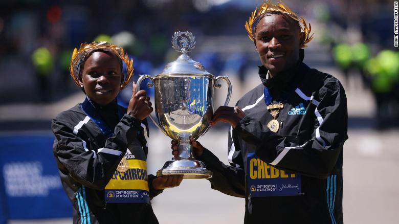 2022 年第 126 屆波士頓馬拉松的男女冠軍由肯亞包辦,女子冠軍為 Peres Jepchirchir(左),男子冠軍為 Evans Chebet。圖/CNN