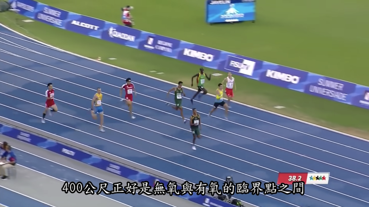 400 公尺是其中一個最高強度的無氧運動,無氧運動是指氧氣還未來得及供應能量及肌肉、只能透過糖能迅速供應能量,簡單來說就是從口吸進的那一口氣還未來得及供應能量及肌肉。