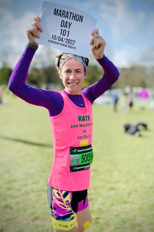四月初,英國跑者 Kate Jayden 連續跑了 101 天的馬拉松,打破緬因州 Alyssa Amos Clark 連續 95 天的紀錄 。圖/the mirror
