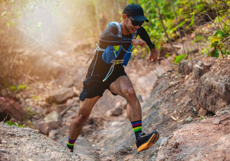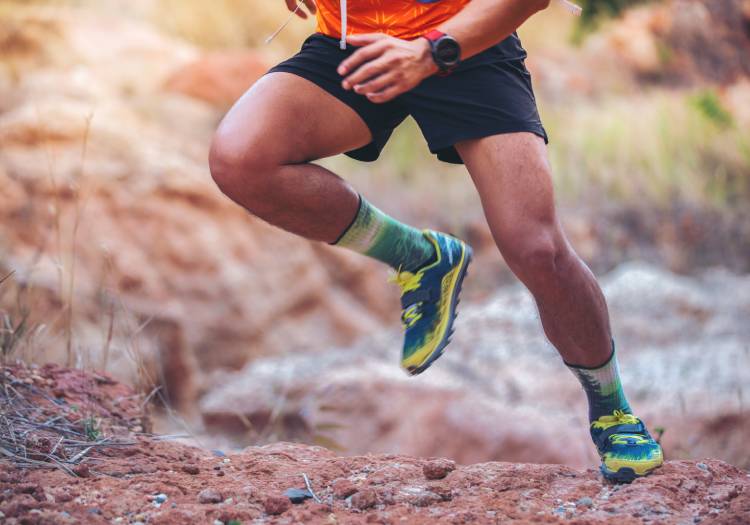 越野跑和路跑最大的差異在於,地形跑起來會很不一樣。一般路跑大多是在柏油路上進行,路徑平坦順暢,不會有太大的高低起伏,或是遇到障礙物,不過越野跑由於是在山道進行,地形充滿變數,可能上一秒是在草地上奔馳,下一秒就踏上碎石頭和爛泥巴,地上的突起物也是不可預測的,因此在視線上需要特別的留意。