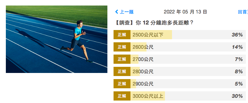還記得運動筆記上禮拜調查各位跑者們 12 分鐘能夠跑多遠嗎?