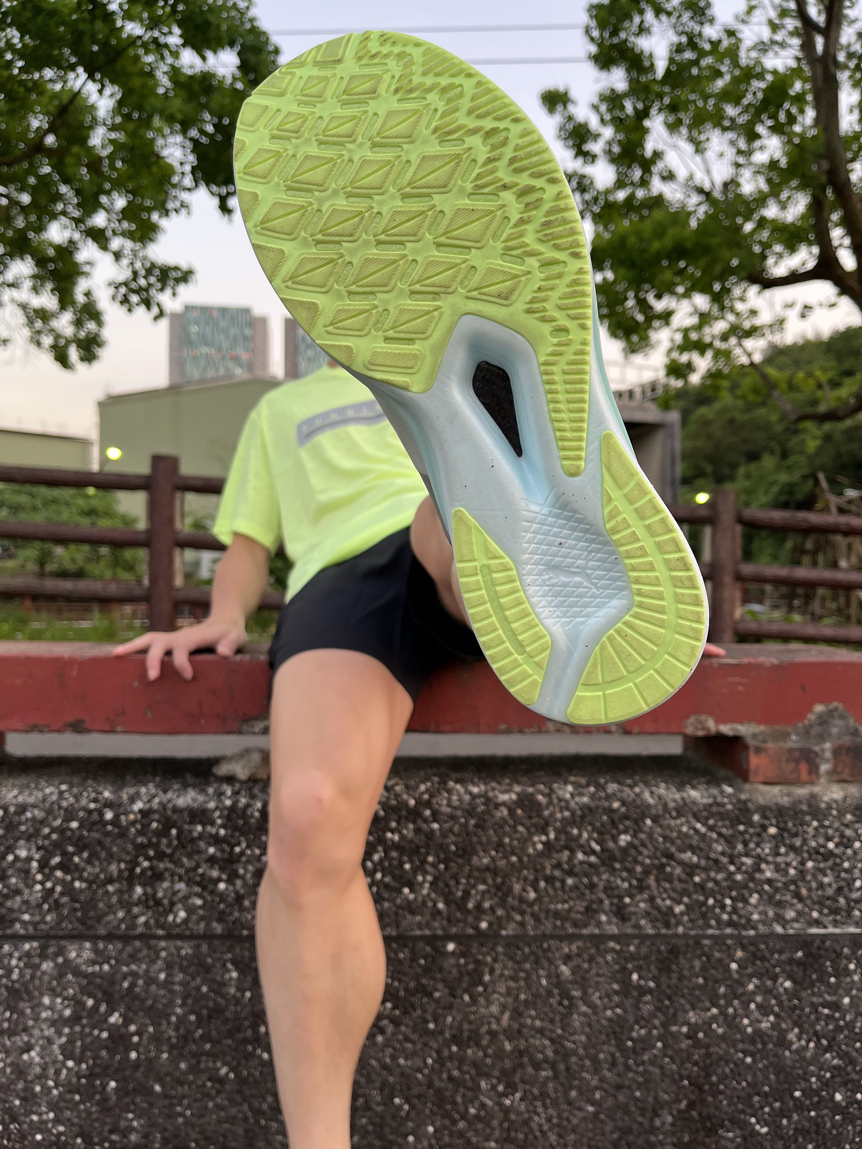 相較一般的競速碳板鞋,較明顯的差異是厚度較薄,以及前後高低差較小,這樣的特色,落地後回彈後的推進感較不明顯,但也相對穩定,跑起來的感受比較自然,比較不會過度前傾,或許使用的肌群也會有所不同,這就端看個人喜好感受。