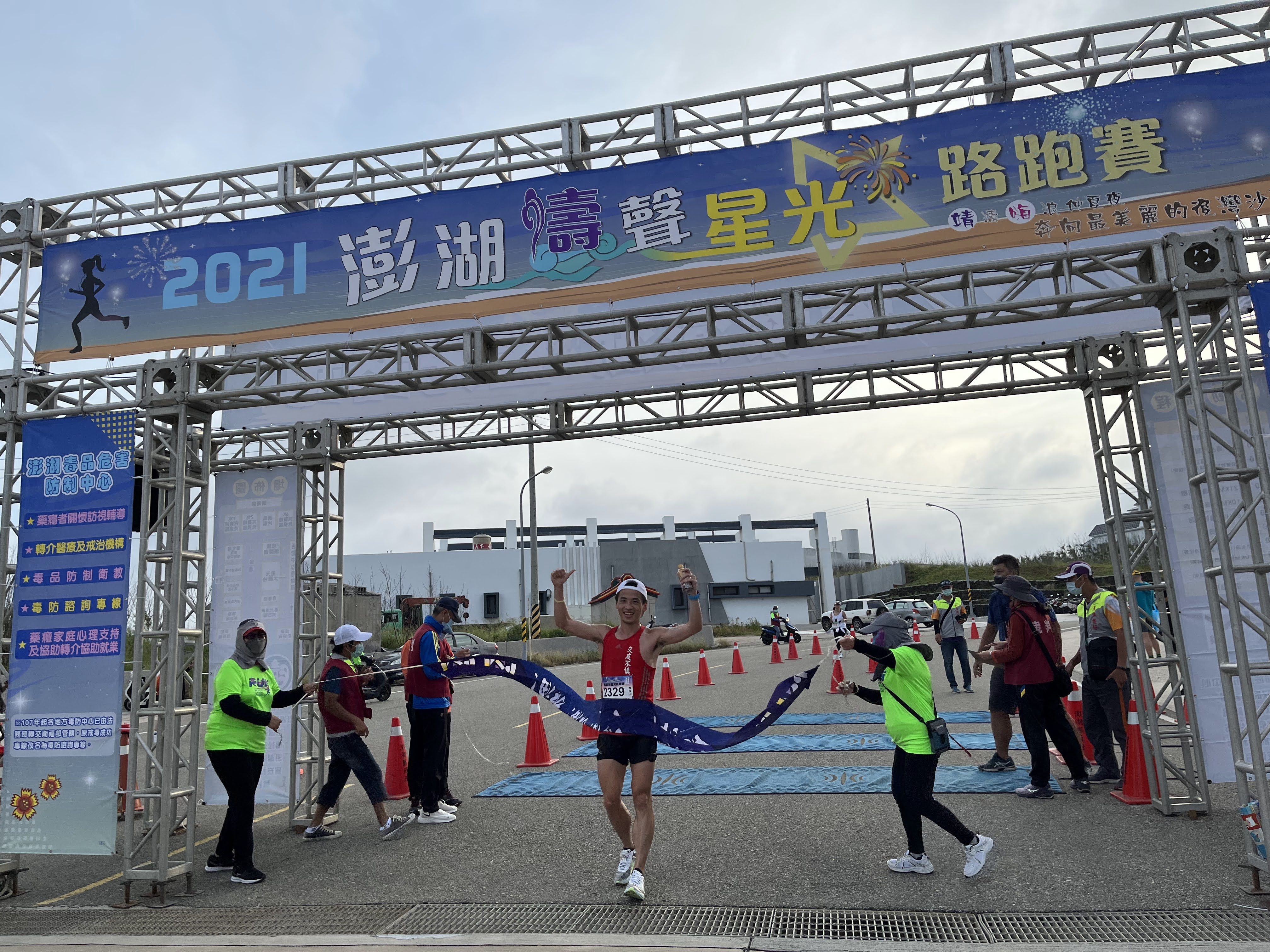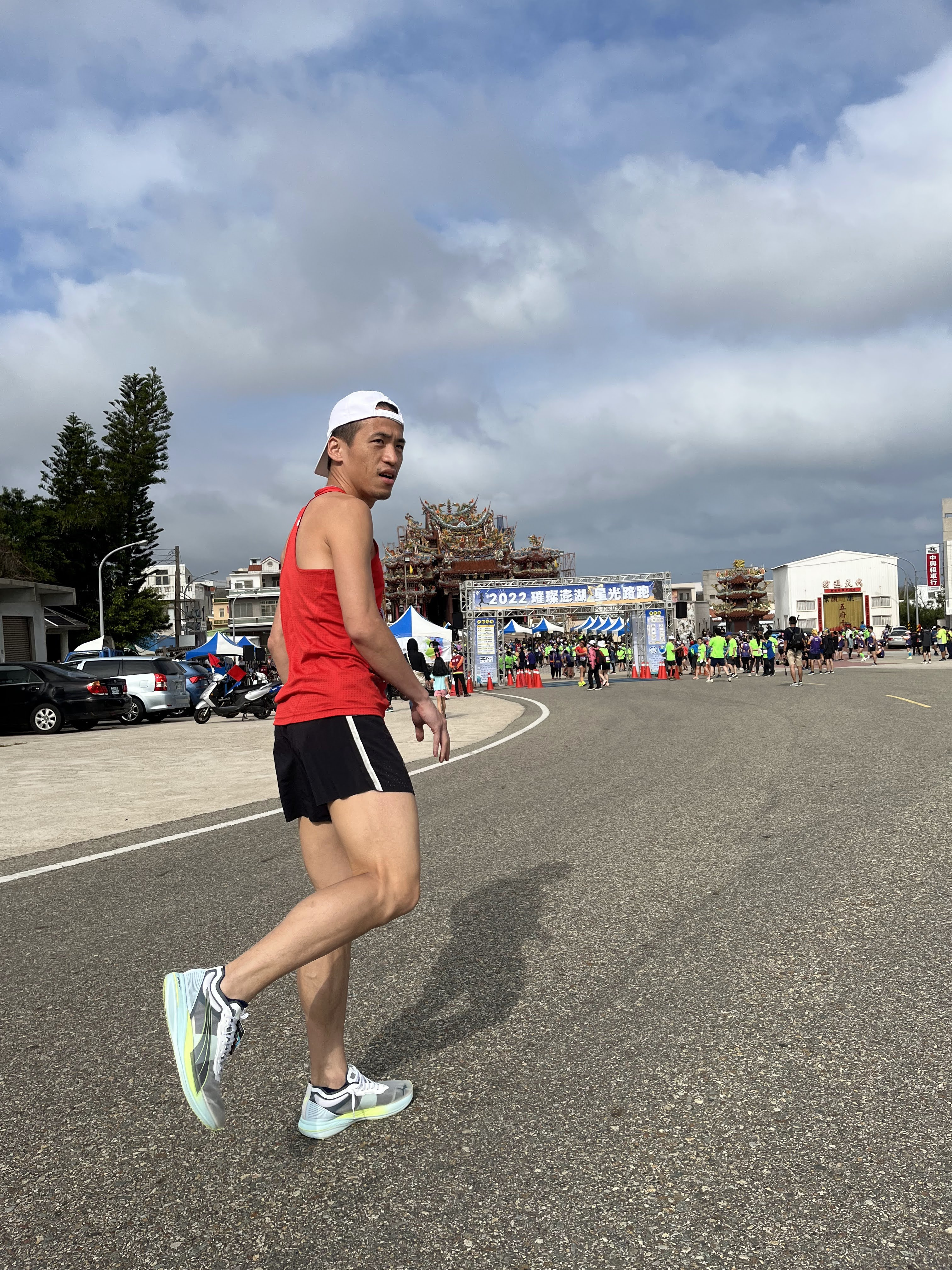 賽前一天就踏上澎湖,首次踏上澎湖感覺就是風真的很大,大到隔天所有的海上活動都取消,下午才比賽,因此早上除了排隊吃美食之外,還站了兩個多小時等待 「摩西分海」 的景觀,結束後急忙趕到會場,幸運地在比賽前二十分找到停車位;趴趴走的關係,起跑前小腿硬梆梆。不過 NITRO 中底的包覆性良好,貼合我的雙腳,在氮氣中底以及碳纖板的輔助之下,很快讓我將速度帶了起來。
