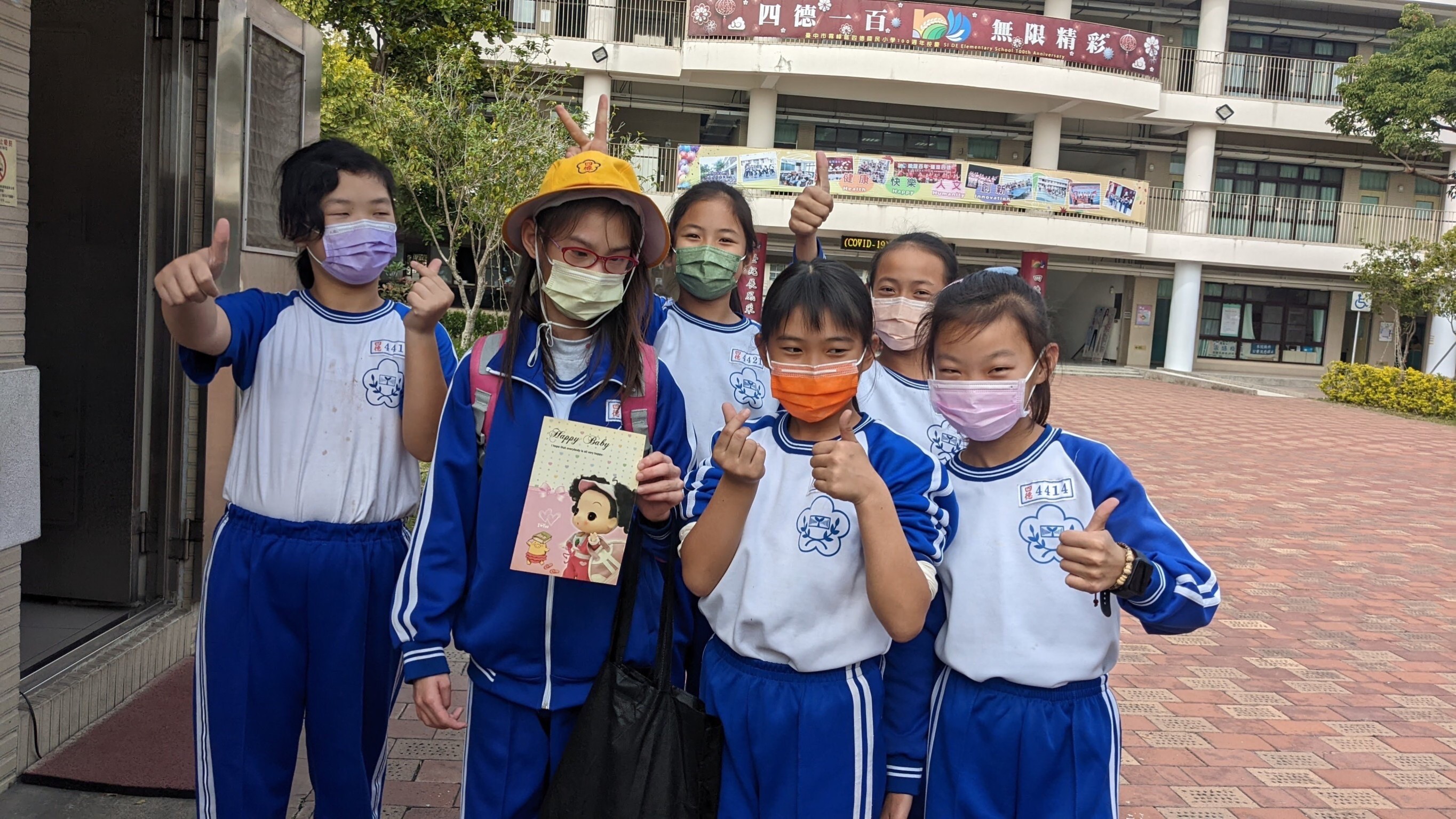 穿體育服的日子,好同學們一如既往陪宜津(左二)到校門口,主動與媽媽分享宜津的校園點滴。