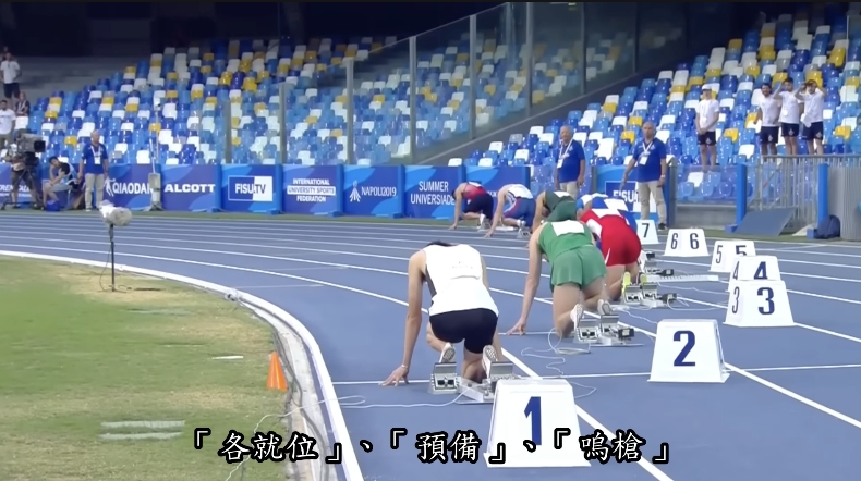 今天又回到田徑項目介紹的系列了,而今天要介紹的是 200 公尺。200 公尺起點是在運動場左上方的地方,根據弧度關係越往外道的跑者都會站得比較前面以減去多的距離。比賽會有三個指令,「各就位」、「預備」、「嗚槍」。