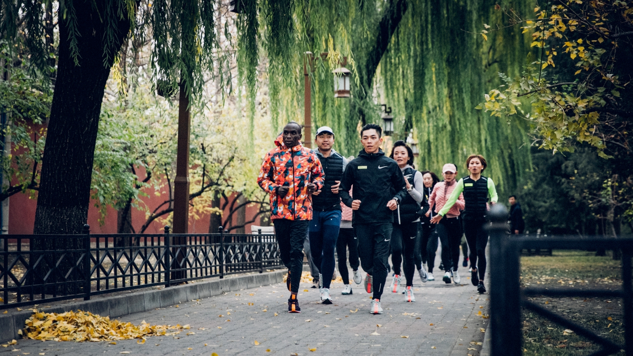 世界馬拉松紀錄保持人 Eliud Kipchoge 與陳盛琦一起帶領黑馬素人跑者奔馳在北京街頭