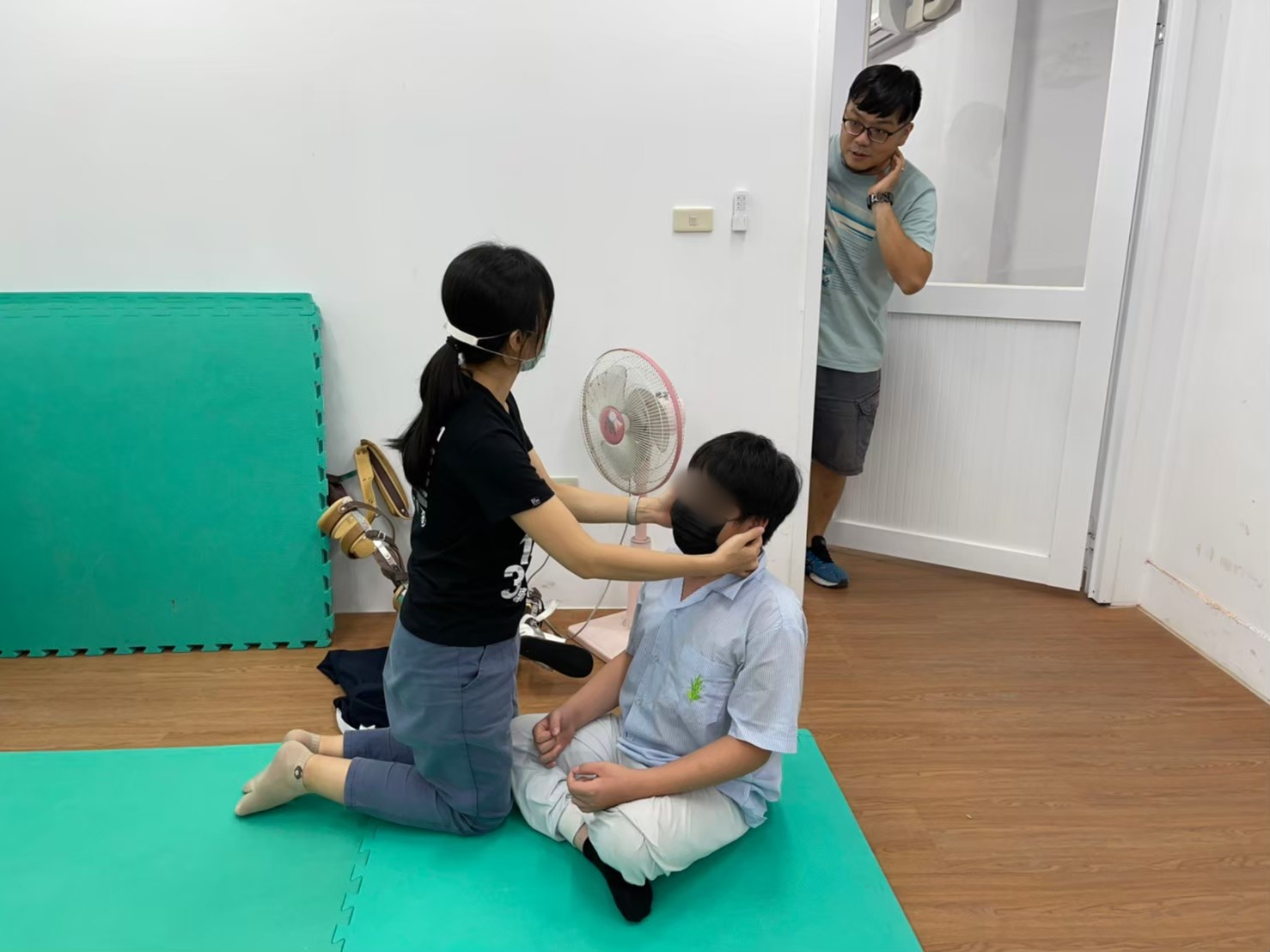 此外,為了更積極糾正代償問題,石老師也邀請物理治療師、運動科學檢測師共同合作。每堂適應體育課後,老師會即時回報課程執行情況給專業人員,諮詢專家的建議與指導,並每月至少安排一次教學現場訪視。