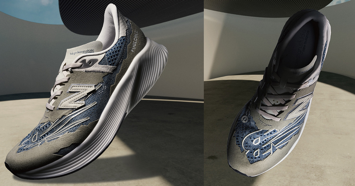 RC Elite V2 不僅在其性能上有著不錯的優勢外,且讓以往走傳統的老爹鞋 New Balance 轉向更現代化的跑鞋結構,RC Elite V2 中底採用 FuelCell 能夠提供跑者高能量回彈,加上碳纖維板能增加腳趾離地的推進力與爆發力達到更快的推進速度;鞋子整體採用藍色網眼搭配配灰色絨面革,鞋底、鞋帶、鞋舌則採用蛋殼白,並且在鞋舌上有著註明身份的 “Tokyo Design Studio” 字樣。