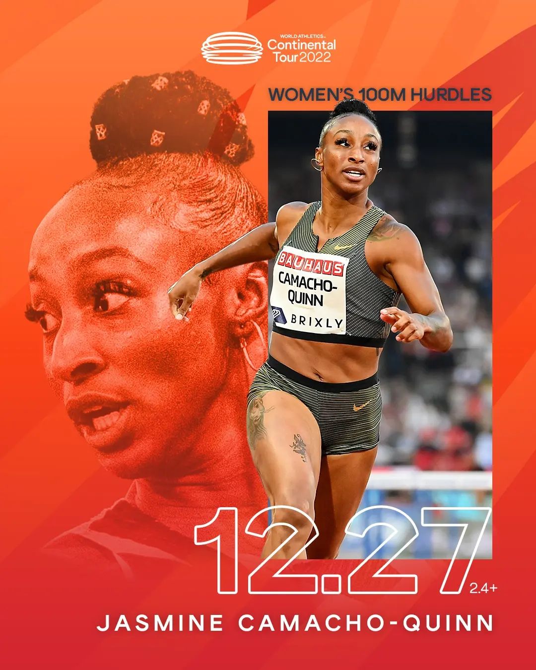 最終,Camacho-Quinn 就以 12.27 通過終點獲得金牌,儘管這成績是她個人賽季最佳且距離個人 PB 僅差 0.01 秒,並且與 Harrison 並列今年第二快的成績,但由於超風速的關係未能列入成績。