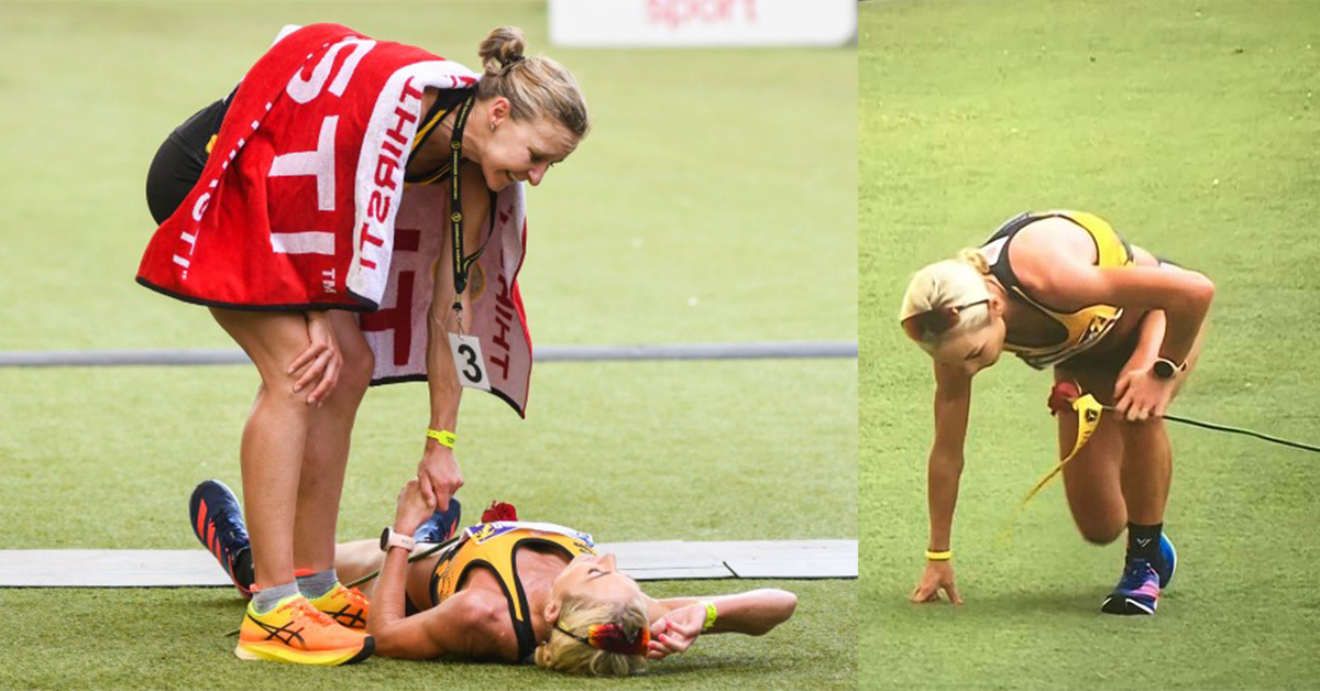 而女子組當中也有相當令人感動的畫面,地主南非選手 Jenna Challenor 在即將到達終點前幾公尺時倒下,儘管她努力想要站起,但雙腳卻不受控制,一旁的男跑者不斷鼓勵她站起來,並且想向她伸出援手,但另一名男跑者見狀立即阻止(幫助選手會被判失格),於是他們只能繼續鼓勵 Challenor,最終她選擇用爬行的方式通過了終點獲得第四名的成績!
