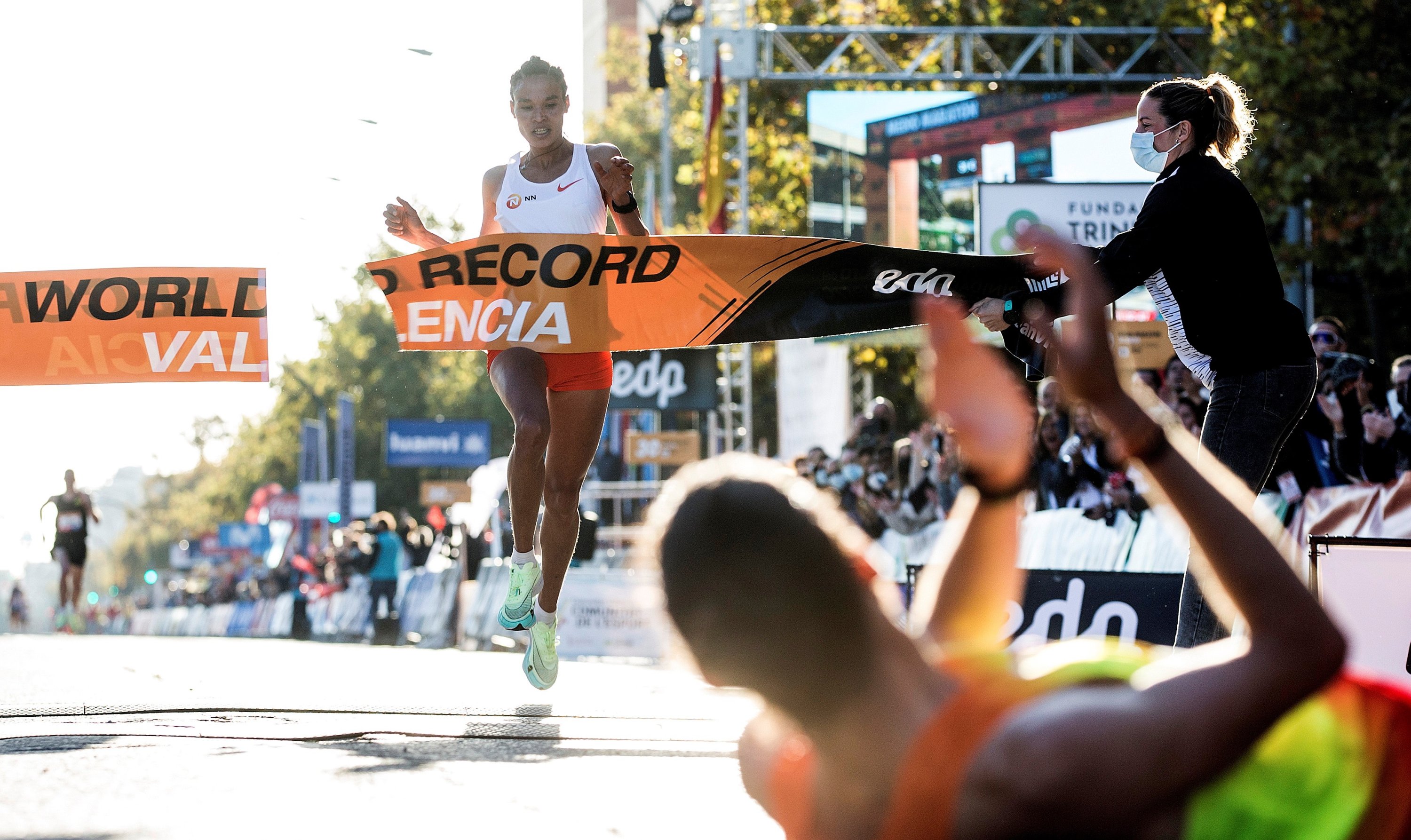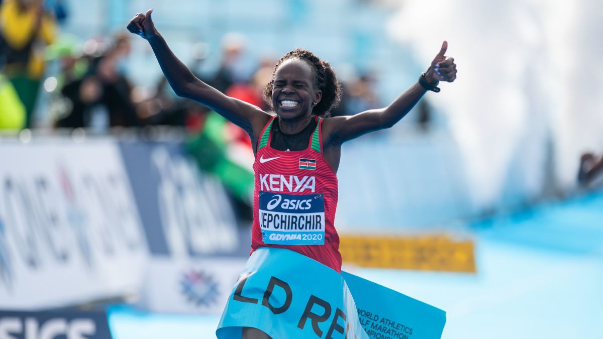 純女子世界紀錄是 Peres Jepchirchir (肯亞)在 2020 年以 1 小時 5 分 16 秒創下。圖/Sport Elite運動王者