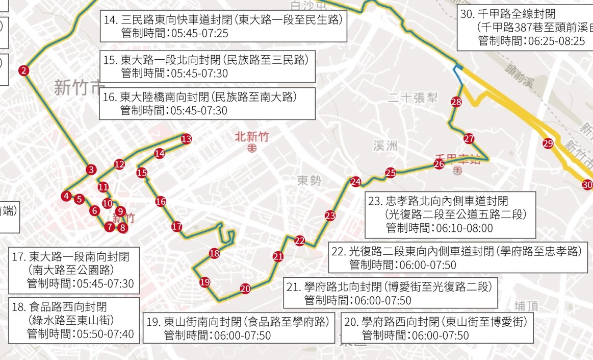 【賽事】2022新竹城市馬拉松 道路沿線管制公告