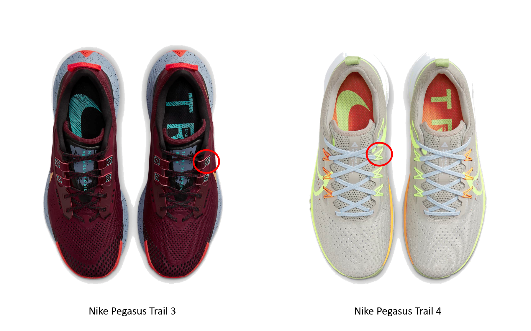 ⭕ Nike Pegasus Trail 3、4 綁帶系統比較