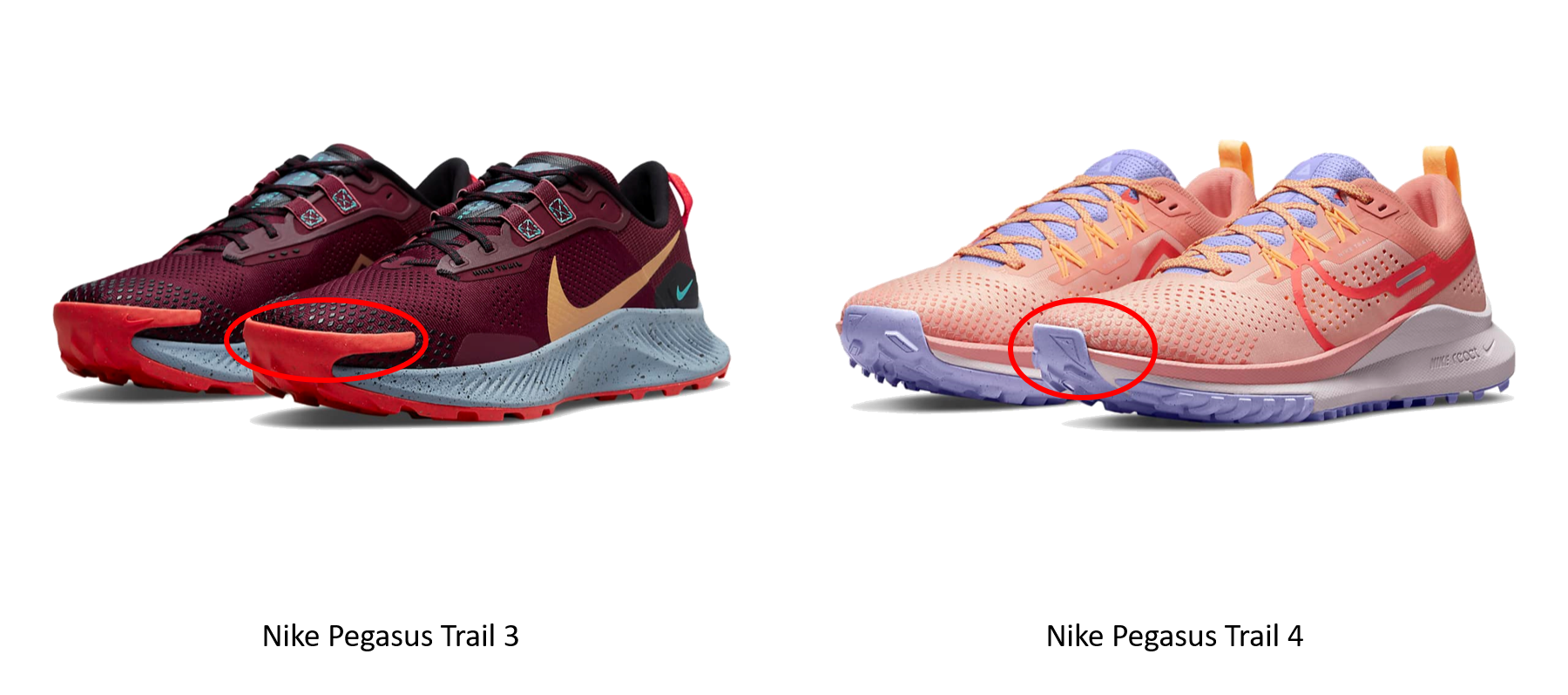 ⭕ Nike Pegasus Trail 3、4 鞋頭比較