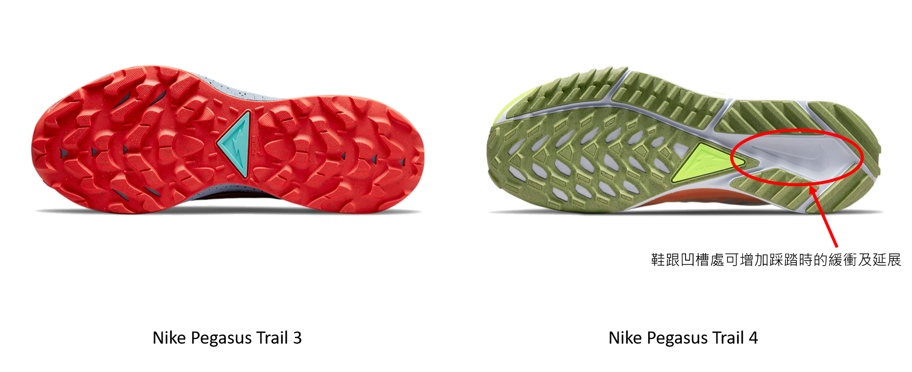 ⭕ Nike Pegasus Trail 3、4 鞋後跟鞋提比較