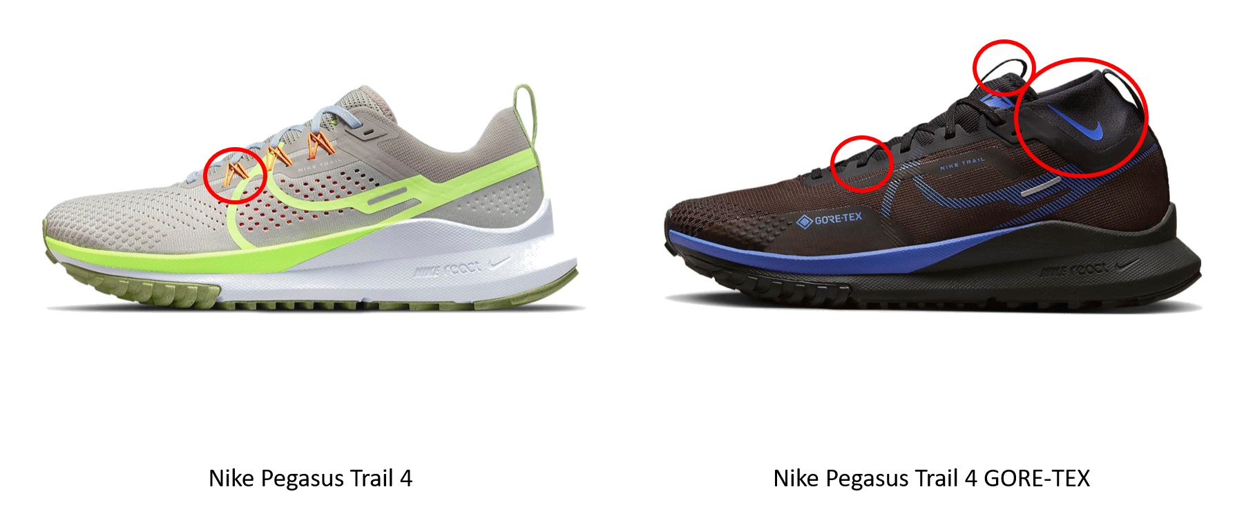 ⭕ Nike Pegasus Trail 4 正常版、GORE-TEX 版鞋面比較