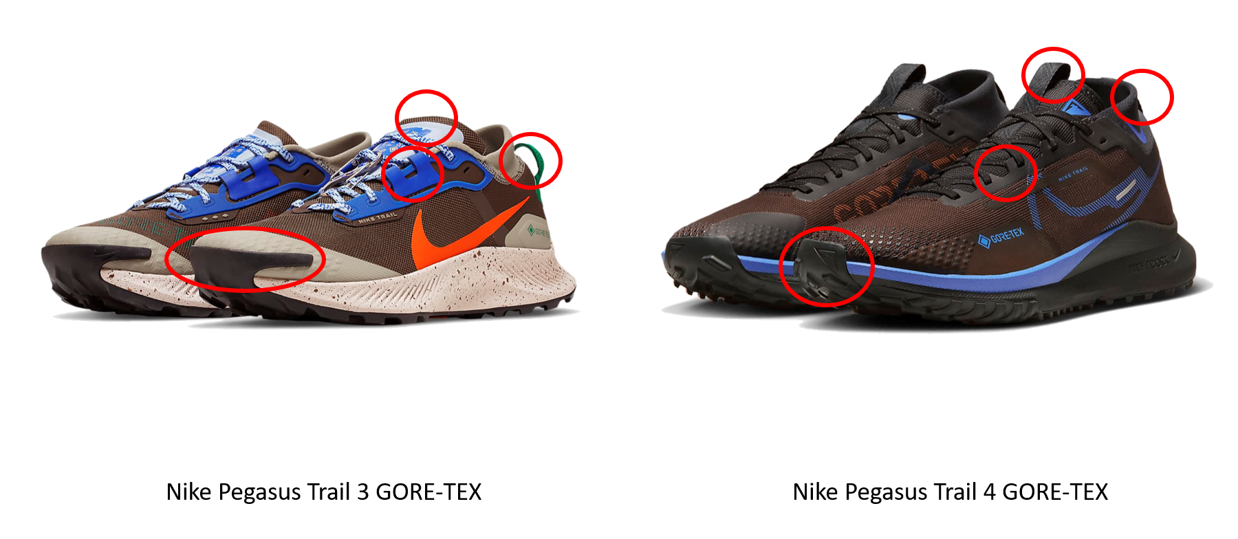 ⭕ Nike Pegasus Trail GORE-TEX 3、4 鞋面比較