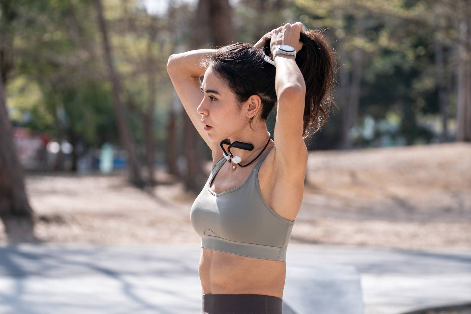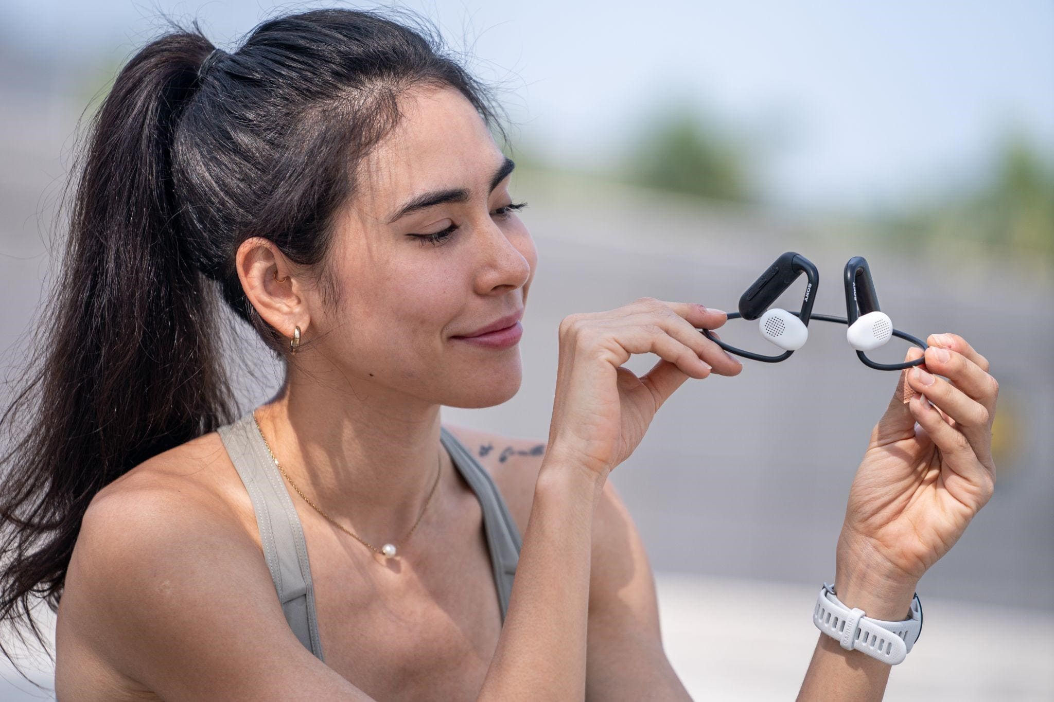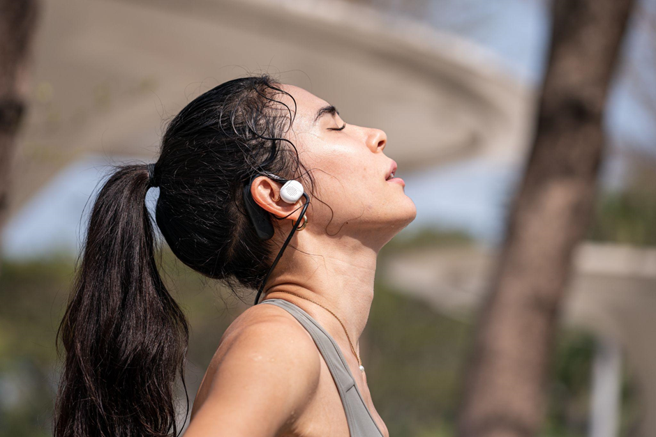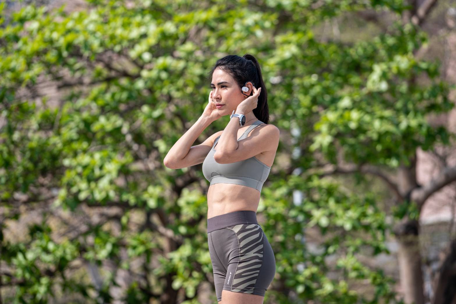 雷理莎過往只有戴過入耳式耳機,離耳式耳機的初體驗便獻給了 —— Sony Float Run,這款專為跑者設計的舒適耳機。「老實說,實際配戴前對於廣告文宣的內容還有點難以置信,但真的幾乎忘記它的存在!」輕量背後的秘密是,Sony Float Run 並非由耳朵配戴而是由頭部配戴~透過「放置」於雙耳之上的方式以減輕耳部負擔。