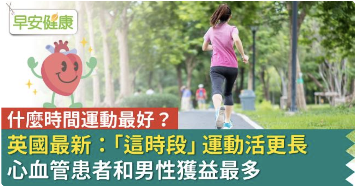 【知識】什麼時間運動最好?英國最新:「這時段」運動活更長 心血管患者和男性獲益最多