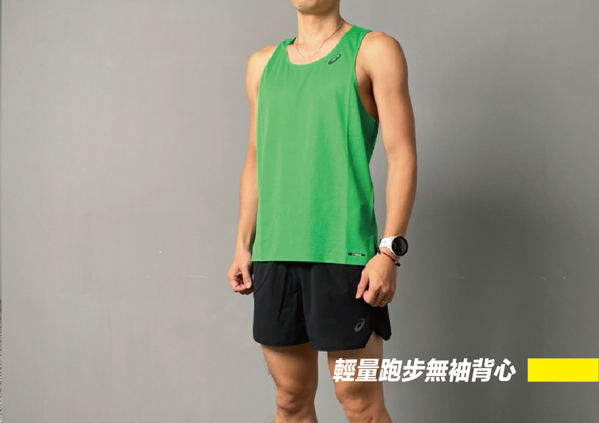 ASICS 輕量跑步背心,合身剪裁材質柔軟,最大特色是在許多需要散熱部位設計了孔洞,提供快速散熱與排汗的效果。