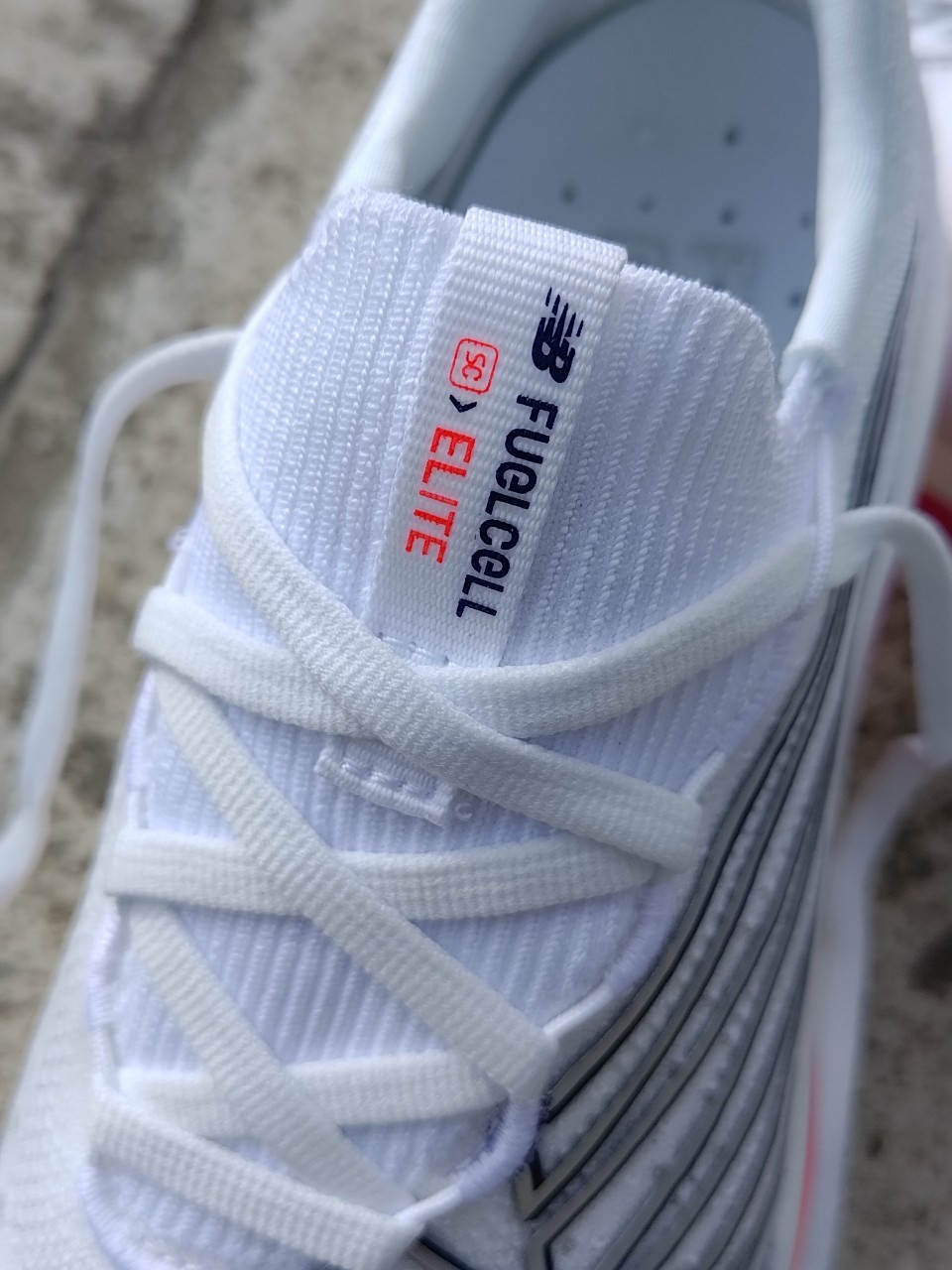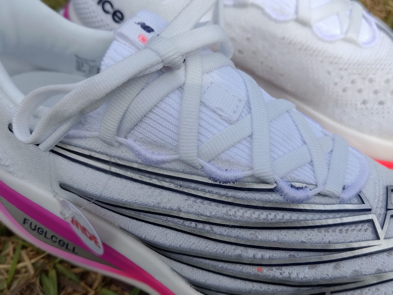 將目光移到鞋面設計,FUELCELL SC ELITE V3 採用襪套式鞋面搭配一體成型的鞋舌設計,包覆感佳但又沒有被勒助的感覺。把腳套進去時,可以感受到鞋面服貼於腳背上,整之腳背輕輕包覆住,舒適而不擁擠。