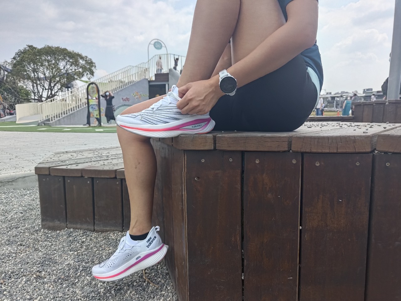 騎完車在來跑步難免有點無力,轉換練習的跑步 5K 以均速 5:51 最佳 5:18 的速度完成,FUELCELL SC ELITE V3 給我的感覺是「只要抬起腳,其他動作FUELCELL SC ELITE V3會幫你完成」,雖然雙腳有些無力,但在推蹬、步伐轉換上依然很順暢,FUELCELL 中底與 Energy Arc 科技的結合展現出足夠又不會過多的回饋,以體感跑下去,不用特別費力,仍有不差的速度表現。