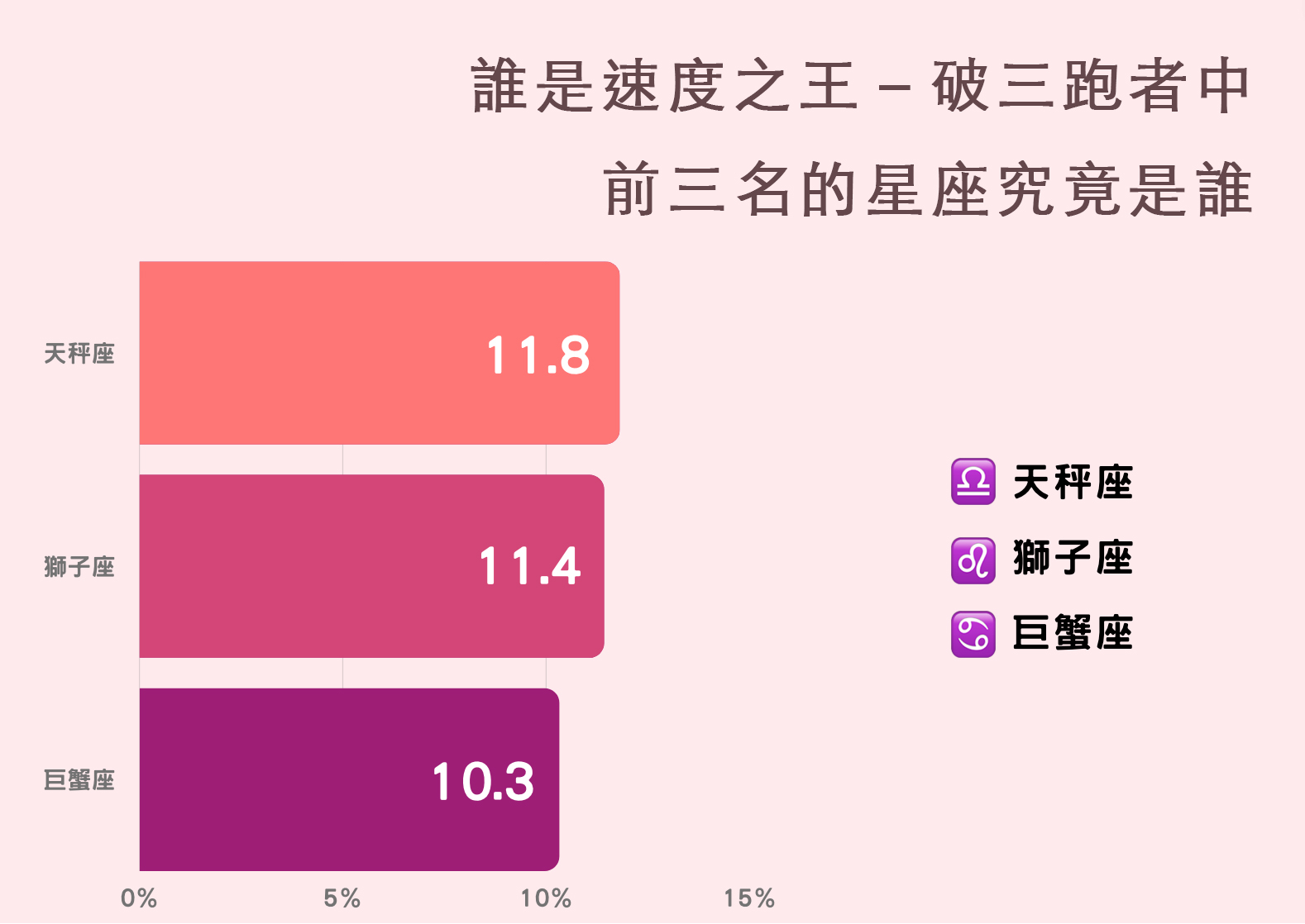 Ι 誰是速度之王-破三跑者中前三名的星座究竟是誰: